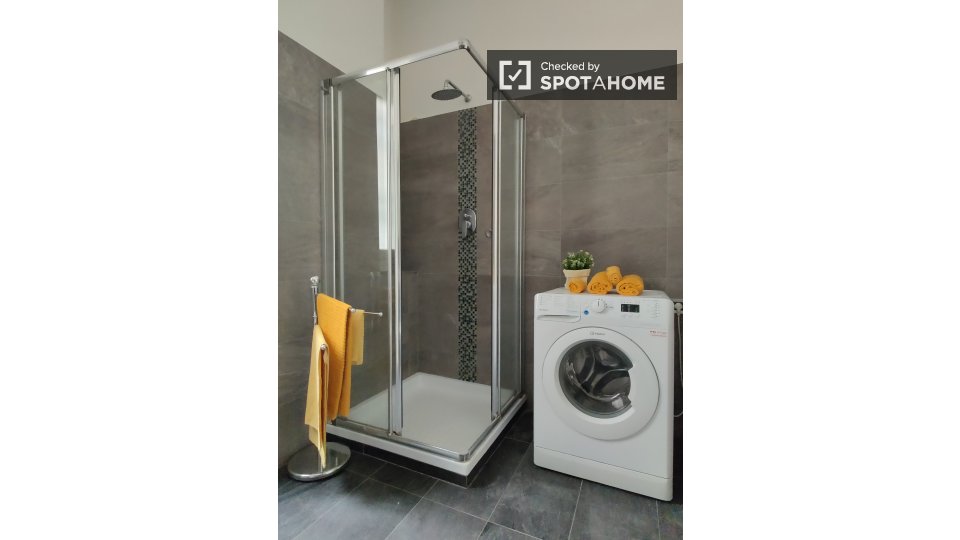 Questo appartamento completamente arredato con una camera da letto a Montespaccato, Roma, offre un confortevole soggiorno con cucina attrezzata, lavatrice privata, balcone e TV. È controllato e verificato da Spotahome. Situato a Montespaccato, l'...