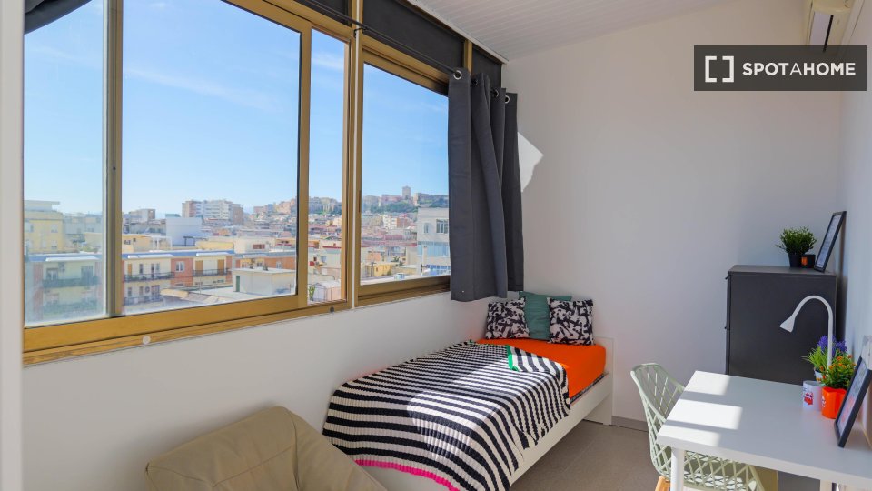 Scopri questa stanza in uno spazioso appartamento condiviso con 7 camere da letto in via Goldoni 24 a Cagliari. L'immobile è disponibile anche in condivisione con altri inquilini. Sebbene non siano stati verificati personalmente, tutti i proprieta...