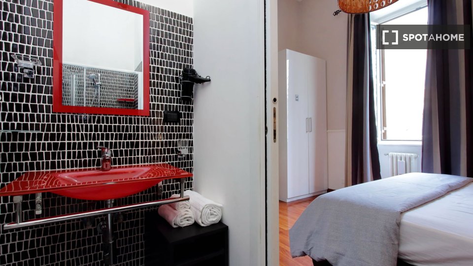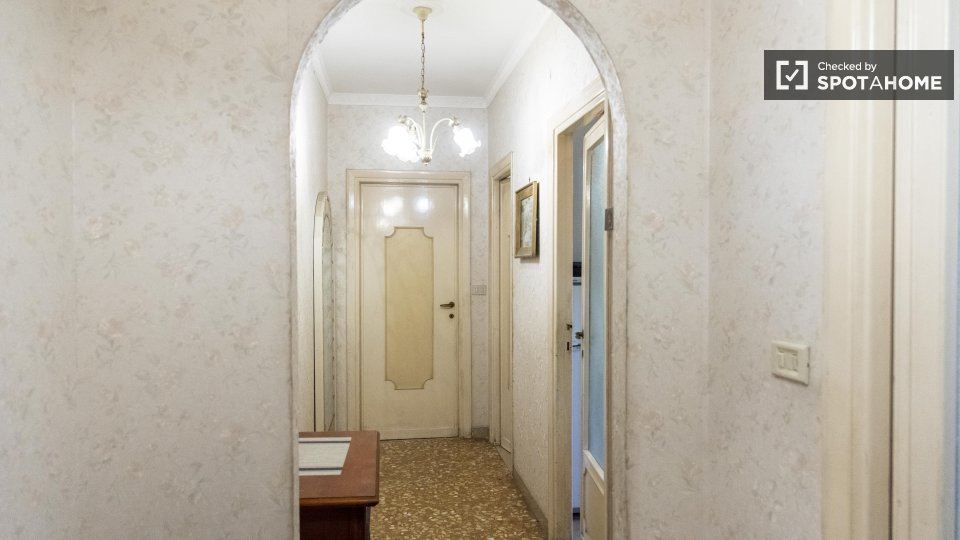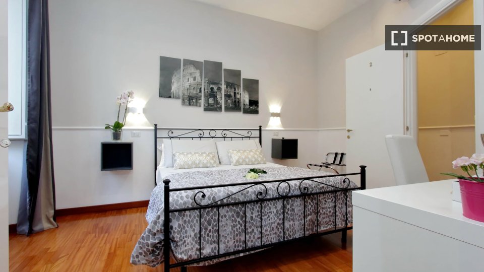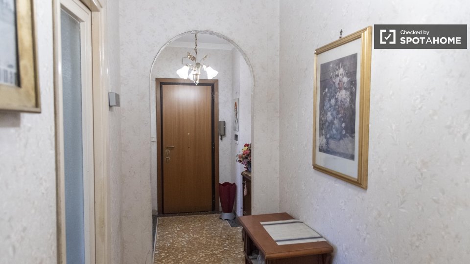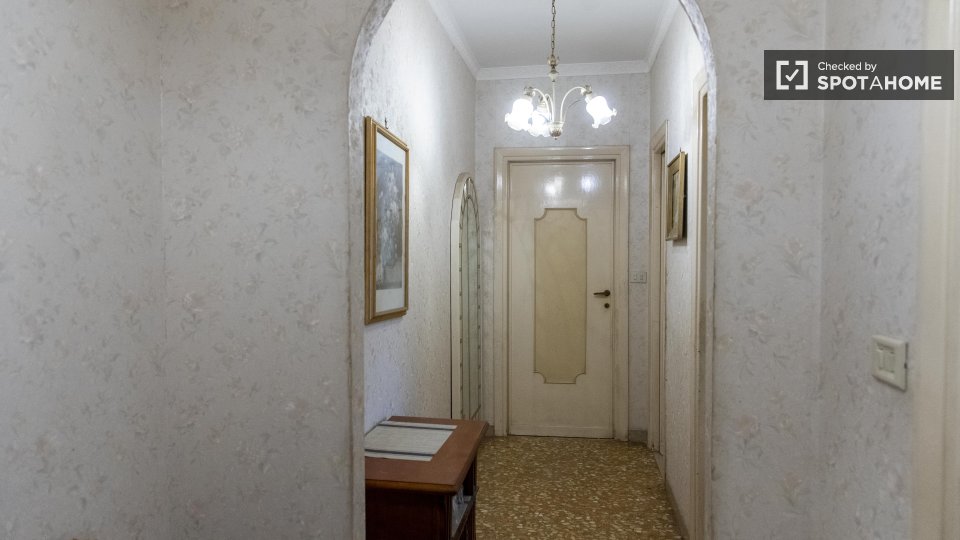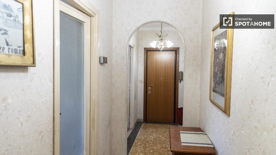 Scopri un'accogliente camera condivisa in affitto in un grazioso appartamento con 4 camere da letto situato nel vivace quartiere Eroi Trionfale di Roma. L'appartamento, completamente arredato, offre comodi servizi, tra cui lavatrice privata, lavas...