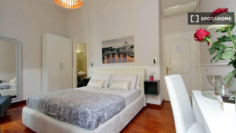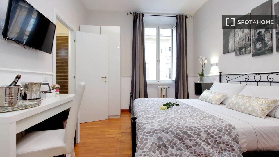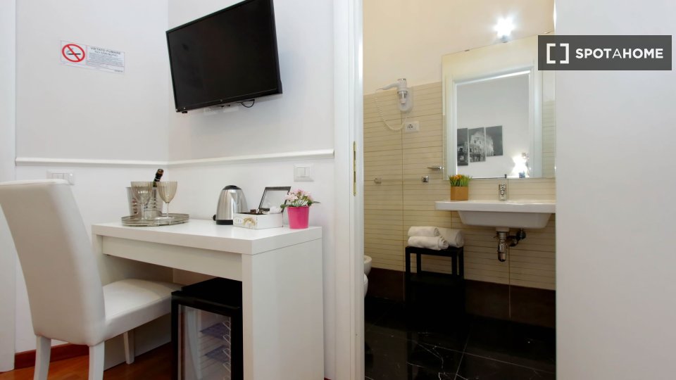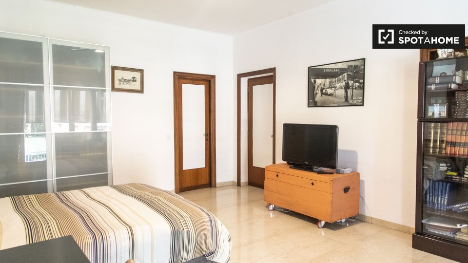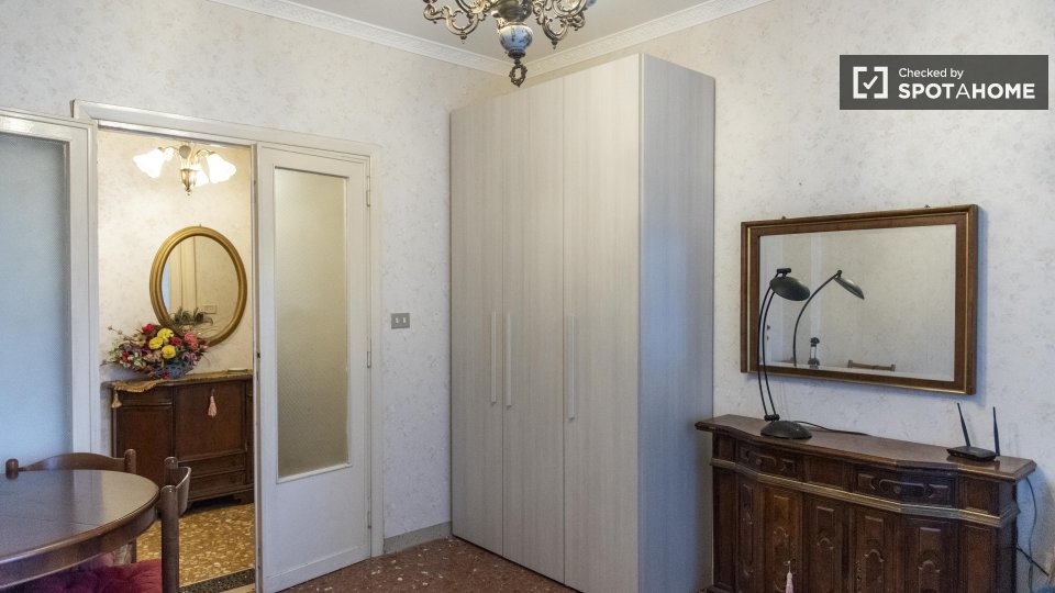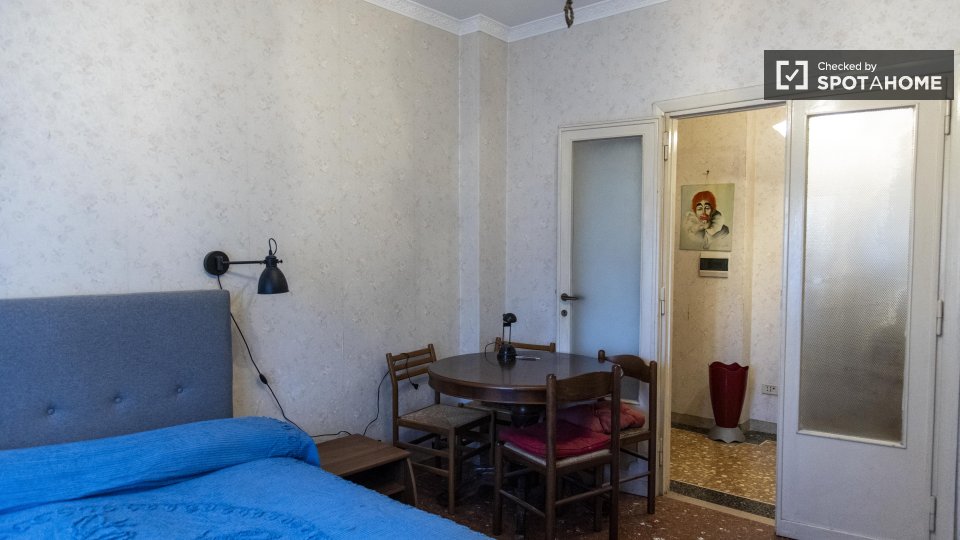 Scopri un'accogliente camera condivisa in affitto in un grazioso appartamento con 4 camere da letto situato nel vivace quartiere Eroi Trionfale di Roma. L'appartamento, completamente arredato, offre comodi servizi, tra cui lavatrice privata, lavas...
