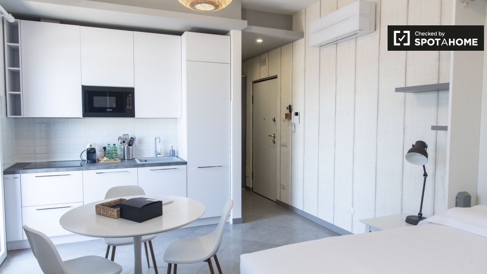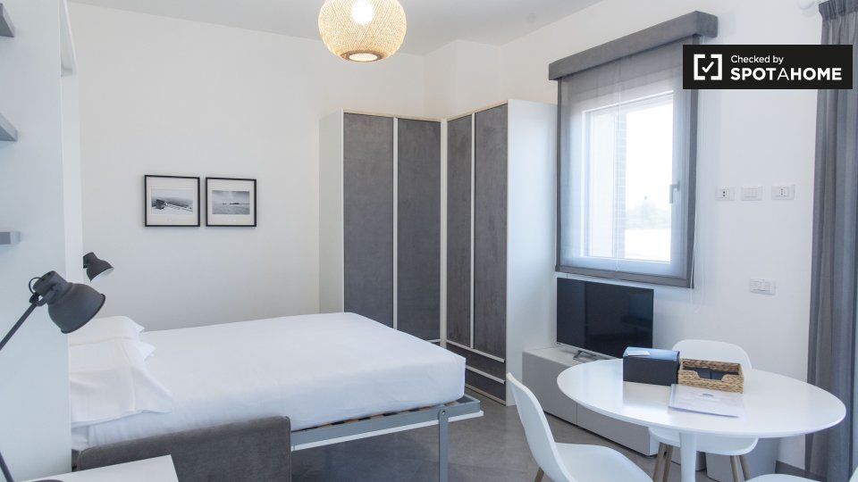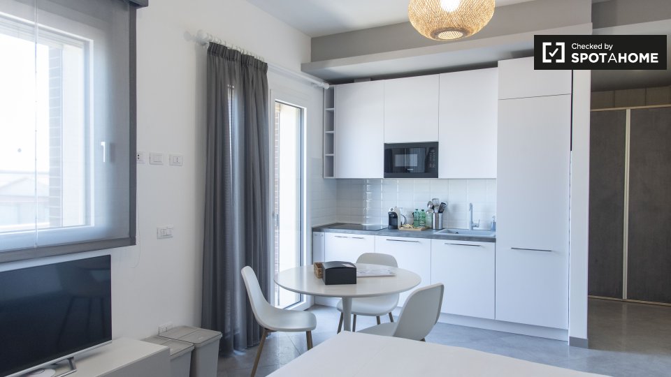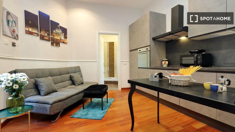 Questo accogliente appartamento con una camera da letto nel quartiere Marconi di Roma è perfetto per i professionisti. Completamente arredato e ben attrezzato, l'immobile include lavatrice privata, riscaldamento e Wi-Fi. La cucina è dotata anche d...