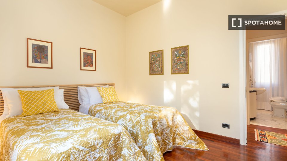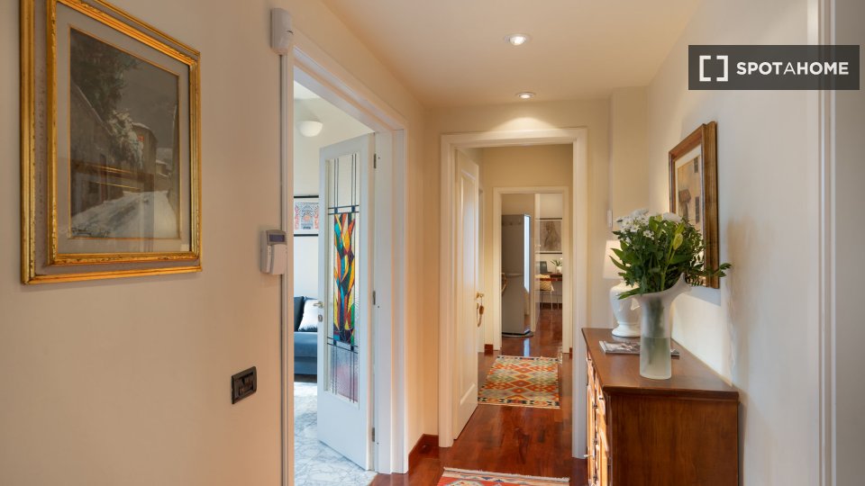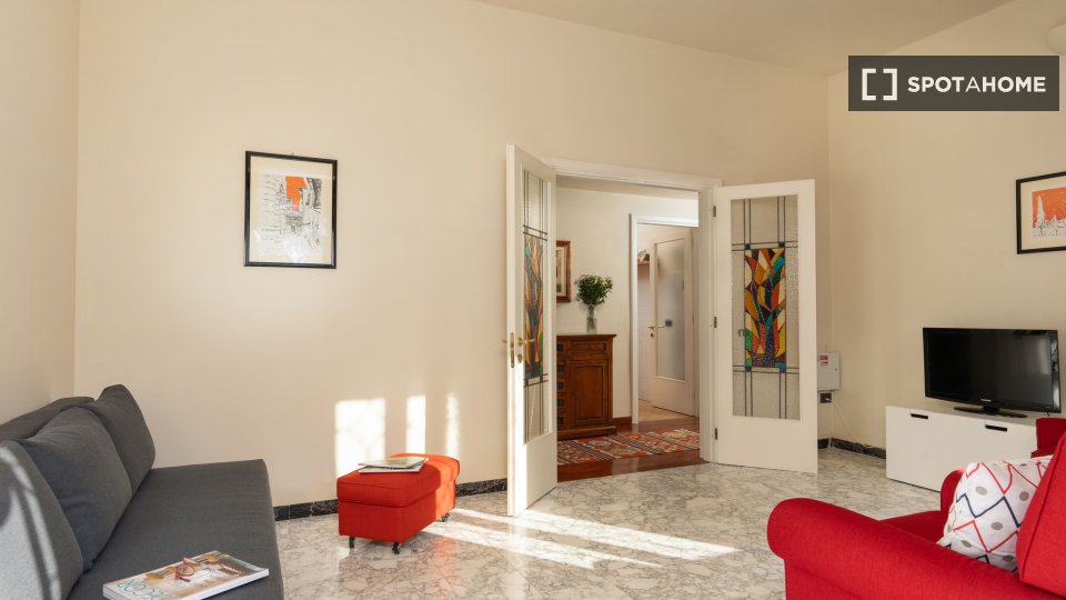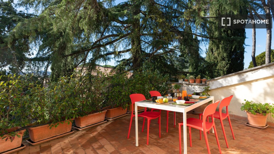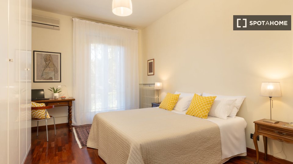 Esplora l'opportunità di affittare una confortevole stanza in un appartamento condiviso con 3 camere da letto situato nel tranquillo quartiere di Ottavia, a Roma. Questa proprietà esterna è completamente arredata e dotata di comfort moderni, tra c...