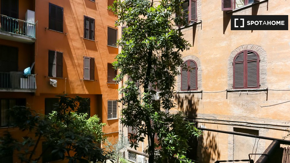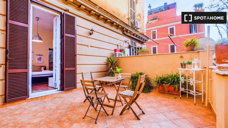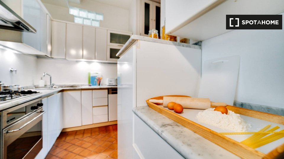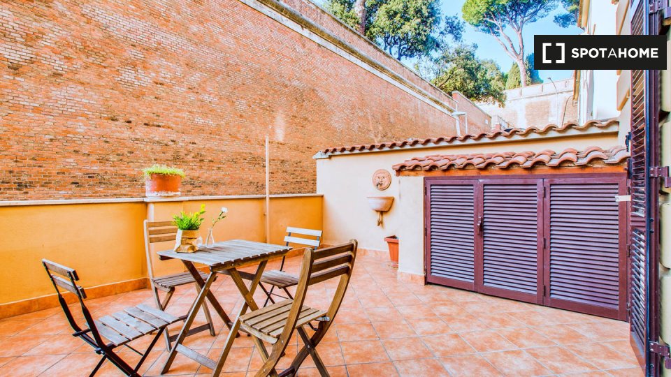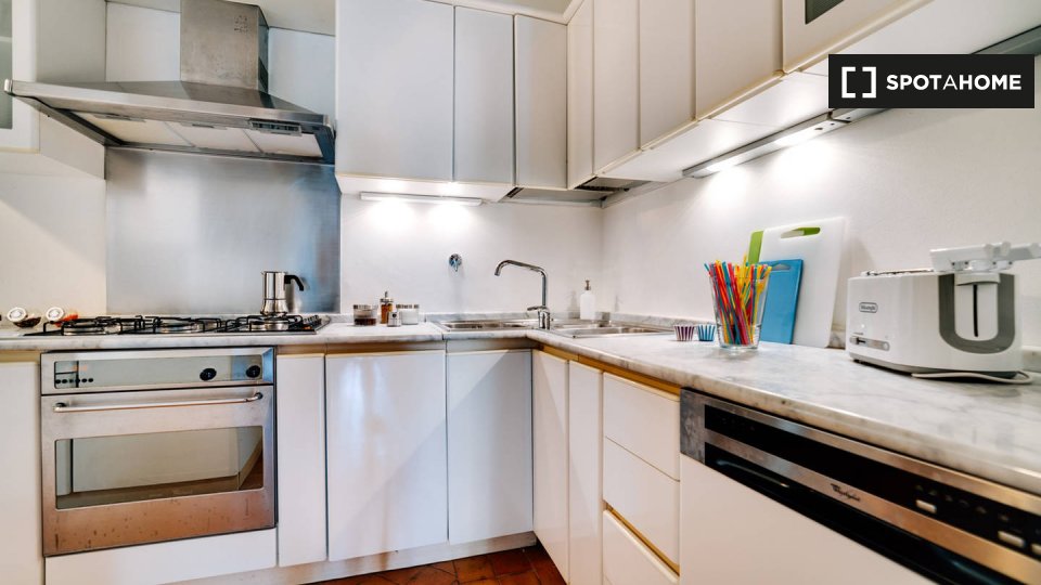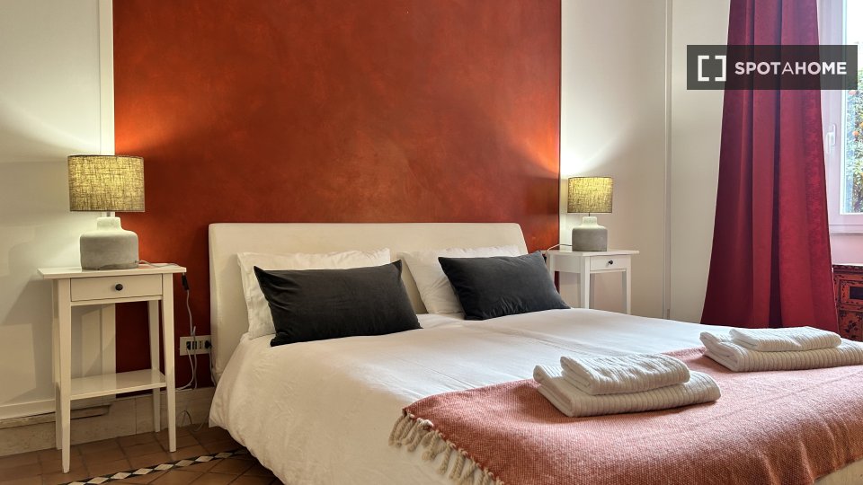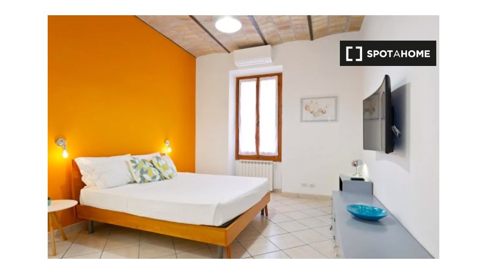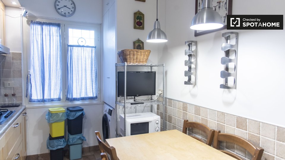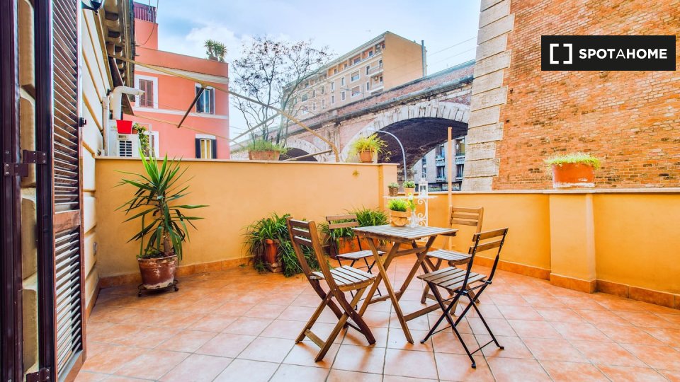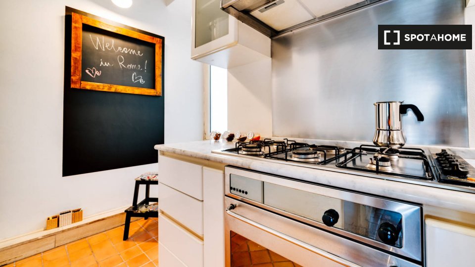 Questo appartamento arredato con 2 camere da letto a Trastevere, Roma, offre alloggi a professionisti e studenti in uno spazio completamente attrezzato. L'unità dispone di aria condizionata autonoma, lavatrice privata, TV e forno in cucina. Un bal...