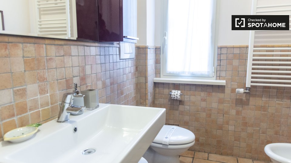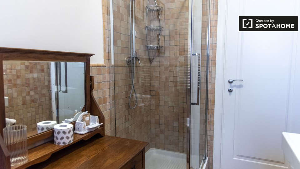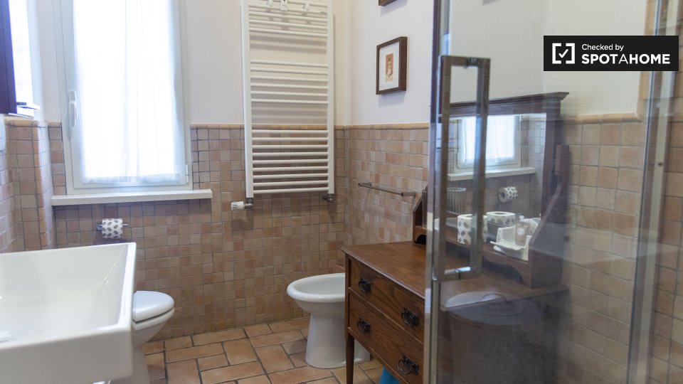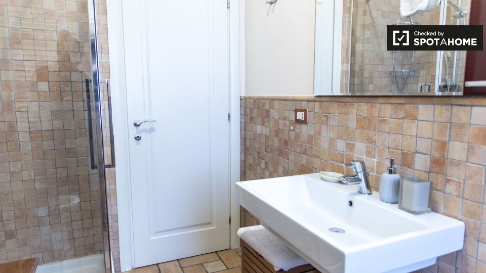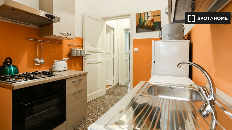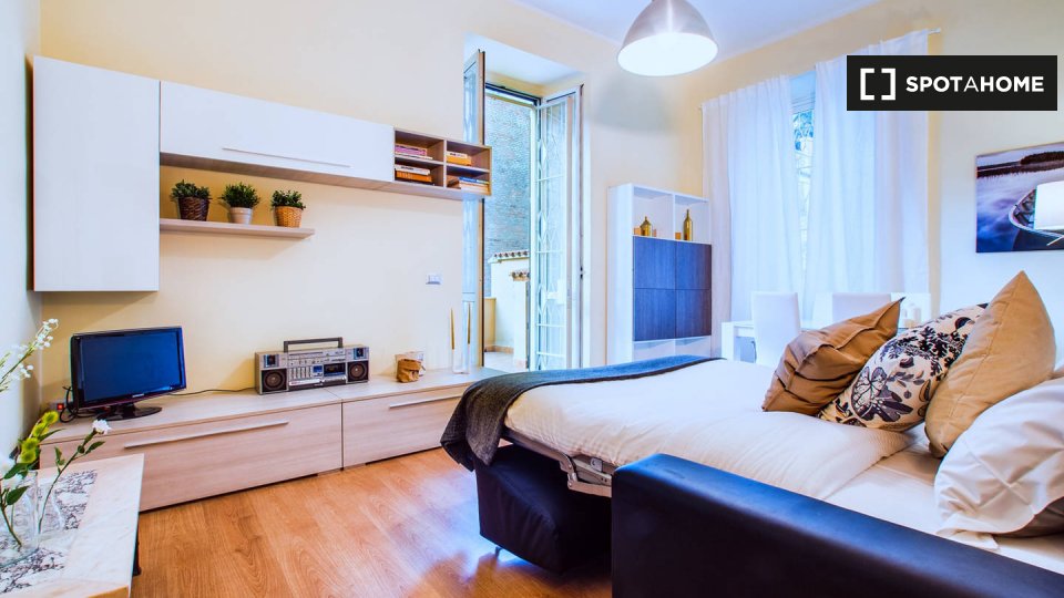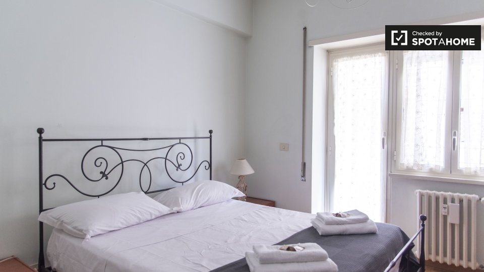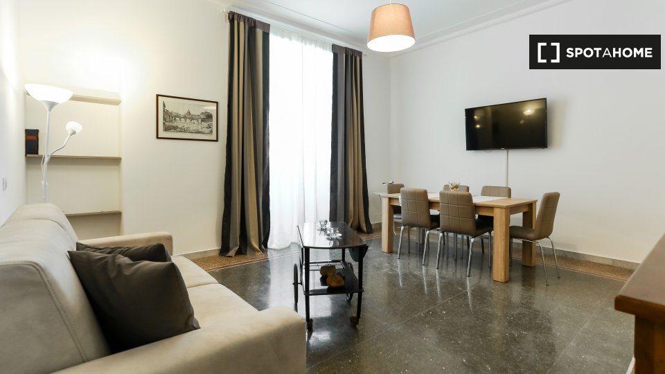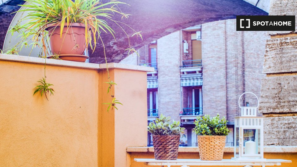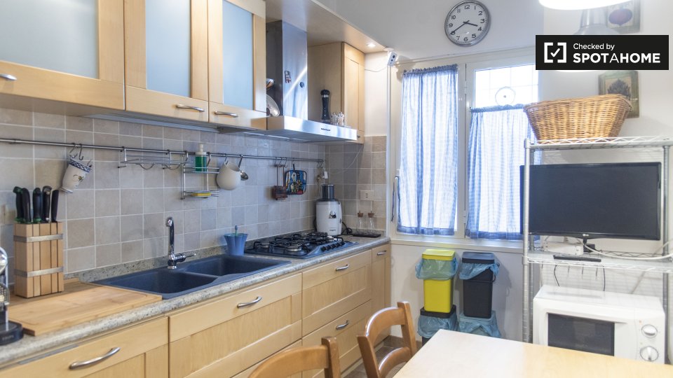 Questo appartamento arredato con 2 camere da letto a Trastevere, Roma, offre alloggi a professionisti e studenti in uno spazio completamente attrezzato. L'unità dispone di aria condizionata autonoma, lavatrice privata, TV e forno in cucina. Un bal...
