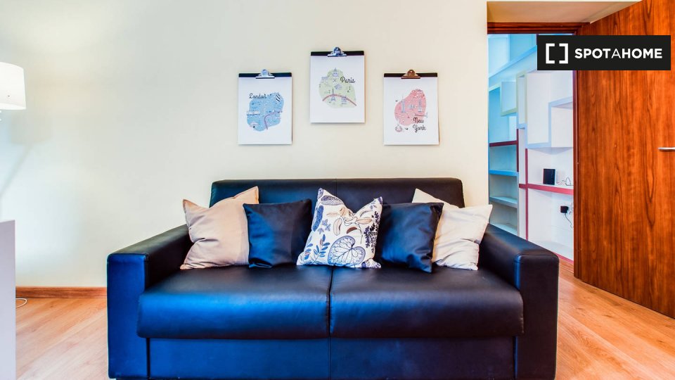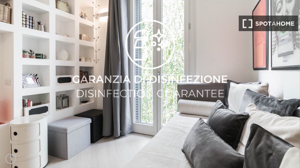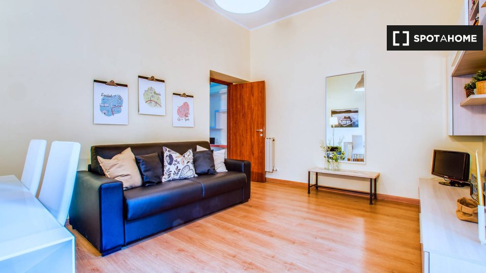 Appartamento arredato con 1 camera da letto in affitto su Via Leopardi. L'immobile si trova al 3 ° piano di una palazzina con ascensore.