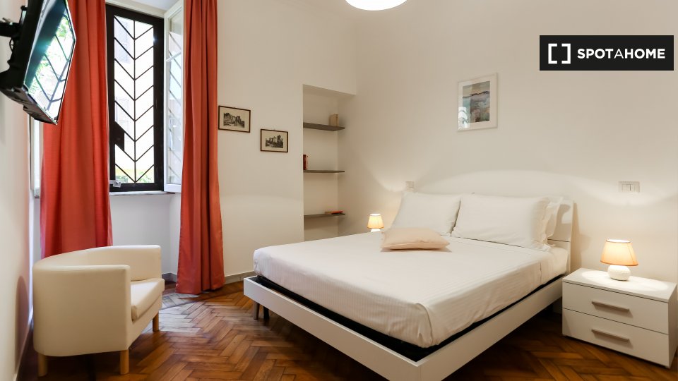 Scopri questo appartamento completamente arredato con 3 camere da letto situato nello storico Rione Monti a Roma. L'immobile dispone di aria condizionata individuale, balcone e riscaldamento centralizzato. È dotato di una moderna cucina completa d...