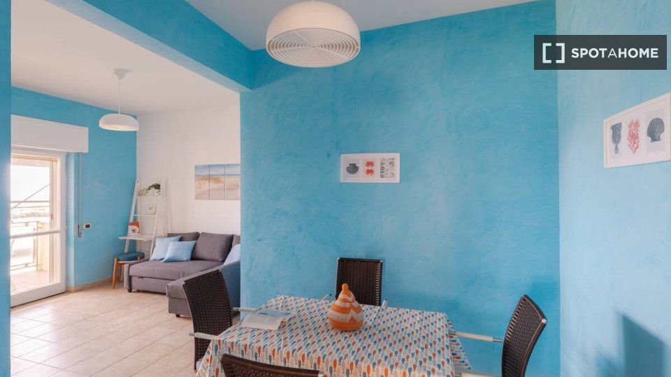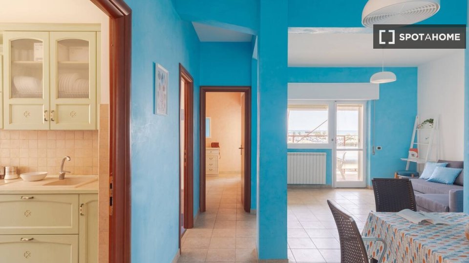 Benvenuti in questo appartamento completamente arredato con 2 camere da letto situato a Ostia Sud, Roma. L'appartamento dispone di una cucina attrezzata e gli animali domestici sono ammessi con restrizioni. È consentito fumare all'interno della pr...