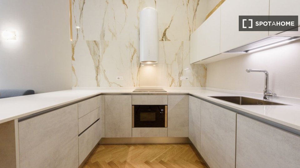 Luminoso e accogliente trilocale al secondo piano in una zona strategica della città, ben collegata alle principali attrazioni turistiche. La cucina è completa di stoviglie ed elettrodomestici: microonde, lavastoviglie, frigorifero, forno e bollit...