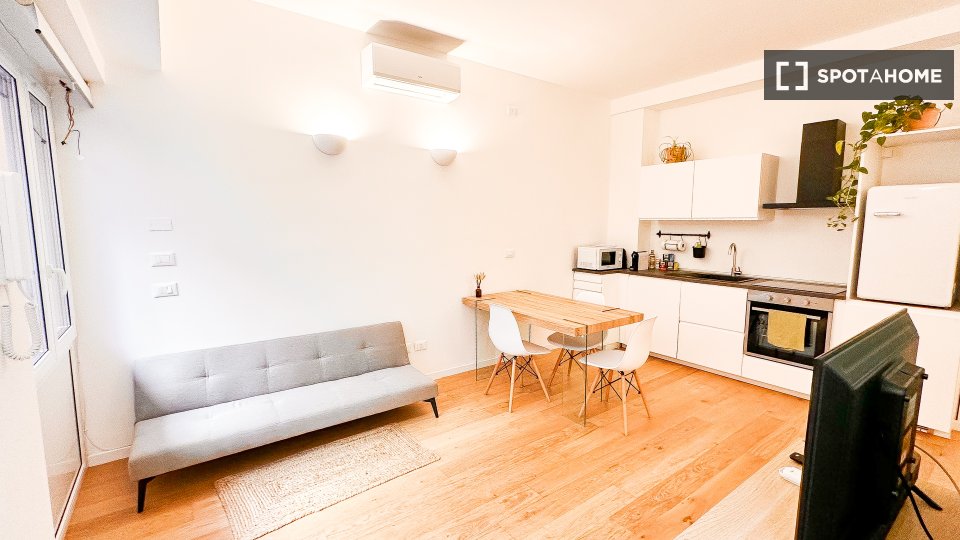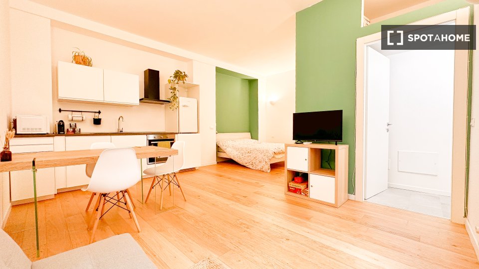 Benvenuti in questo monolocale completamente arredato e ben attrezzato, situato nel quartiere Tibaldi di Milano. L'appartamento è progettato per offrire comfort e praticità, e le utenze (elettricità, gas, acqua e Wi-Fi) sono incluse nel prezzo di ...