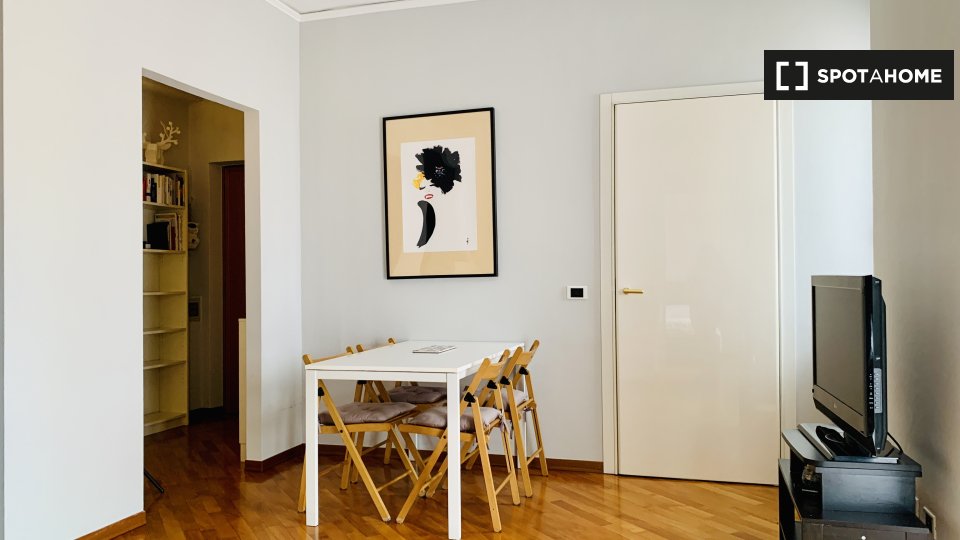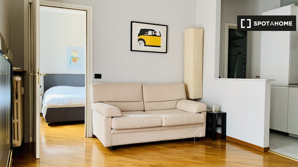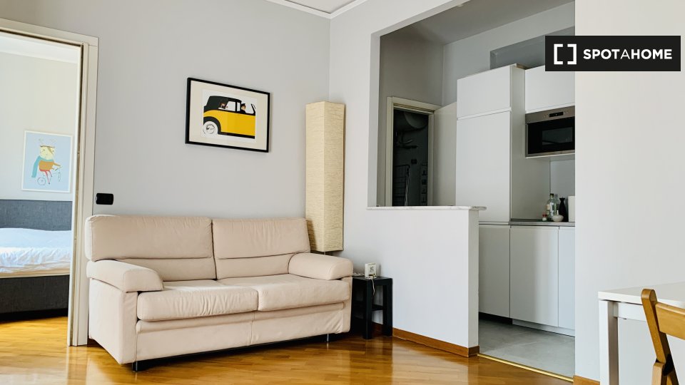 Benvenuti in questo appartamento con una camera da letto situato nel quartiere Sarpi di Milano. Questo appartamento completamente arredato dispone di aria condizionata individuale, riscaldamento centralizzato, un balcone per il vostro relax e Wi-F...