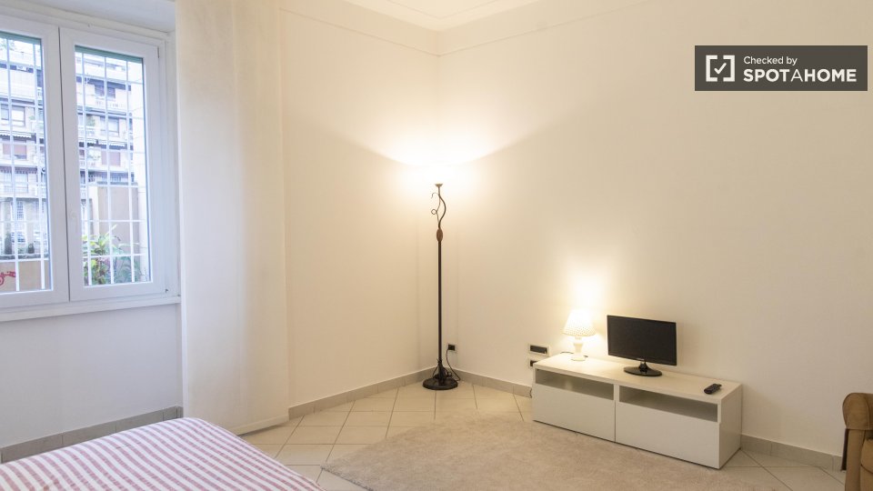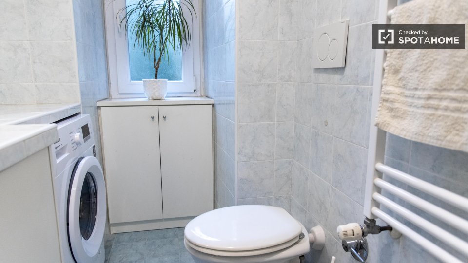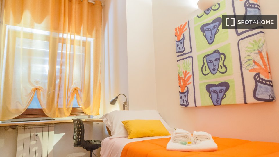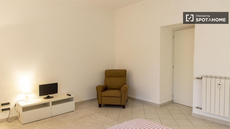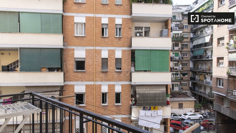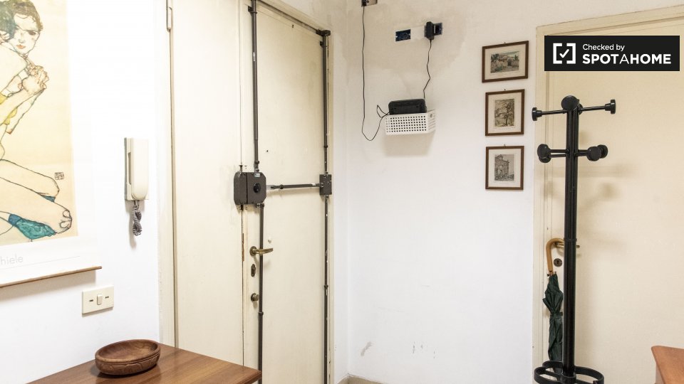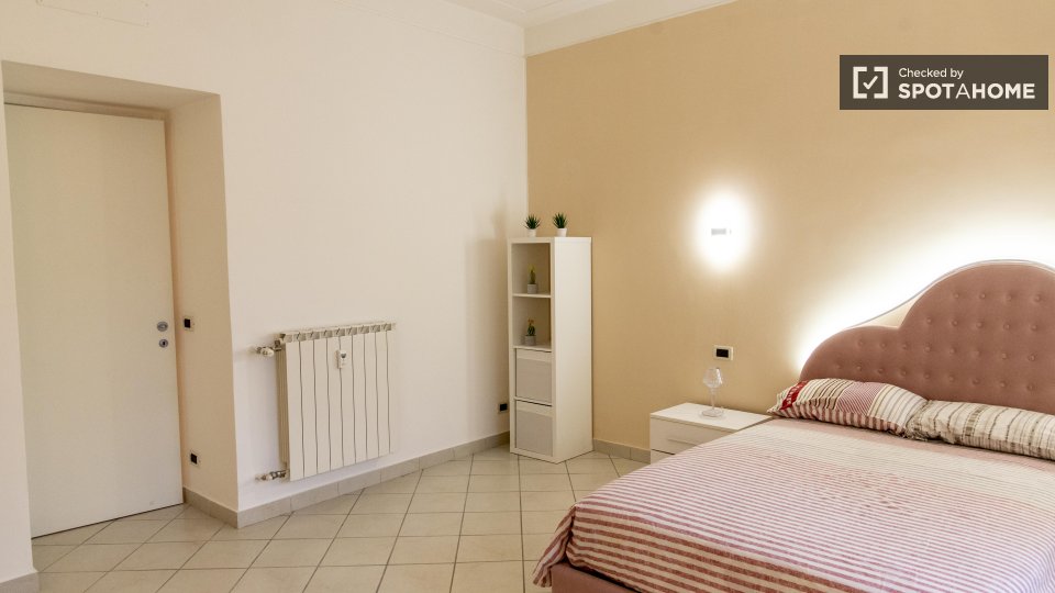 Questa camera splendidamente arredata è disponibile in un appartamento condiviso con 6 camere da letto a Trastevere, Roma. L'appartamento è dotato di riscaldamento centralizzato, balcone e lavatrice privata per una maggiore comodità. È consentito ...
