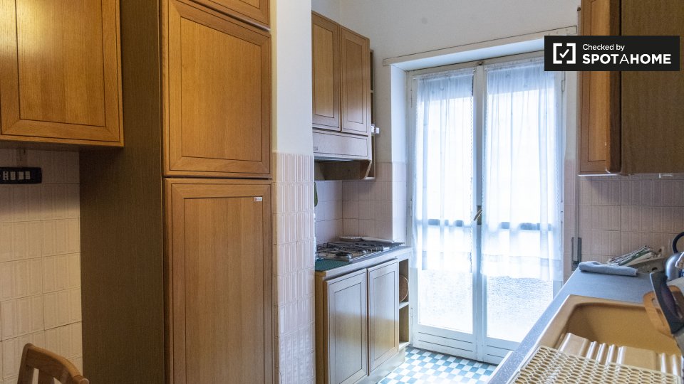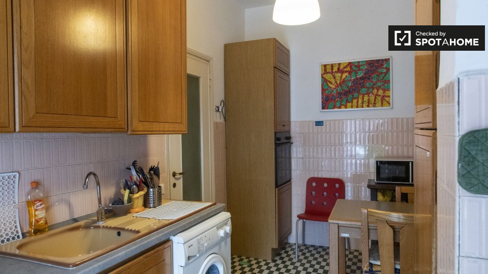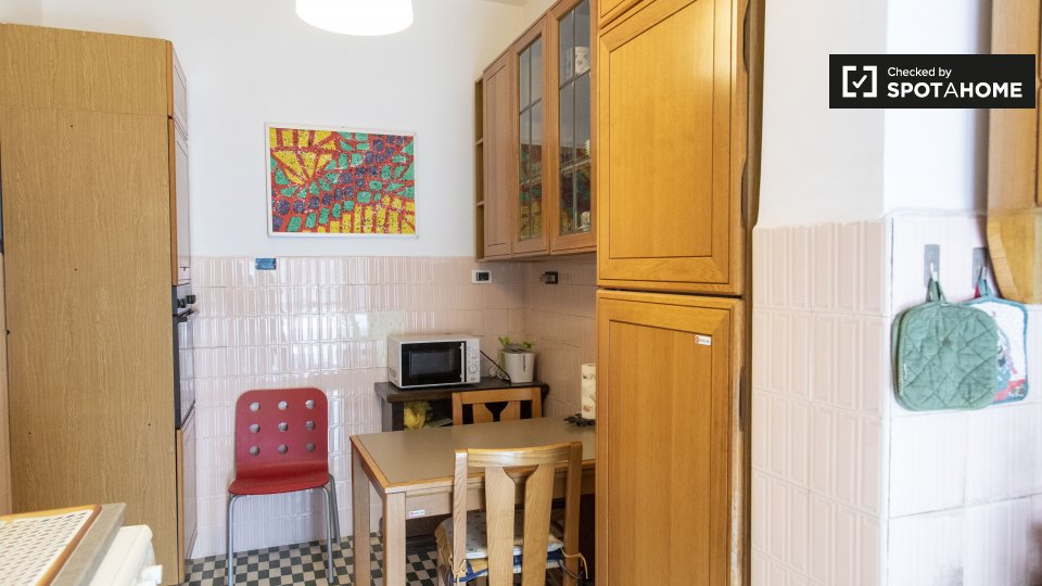 Ci sono camere in affitto in questo appartamento in Via Ulisse Dini a Portuense. Questa proprietà di 80m² è completamente arredata e dispone di una cucina completamente attrezzata, con forno e frigorifero di dimensioni standard. . Il bagno è piast...