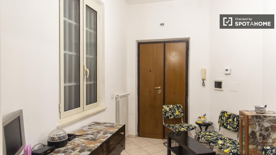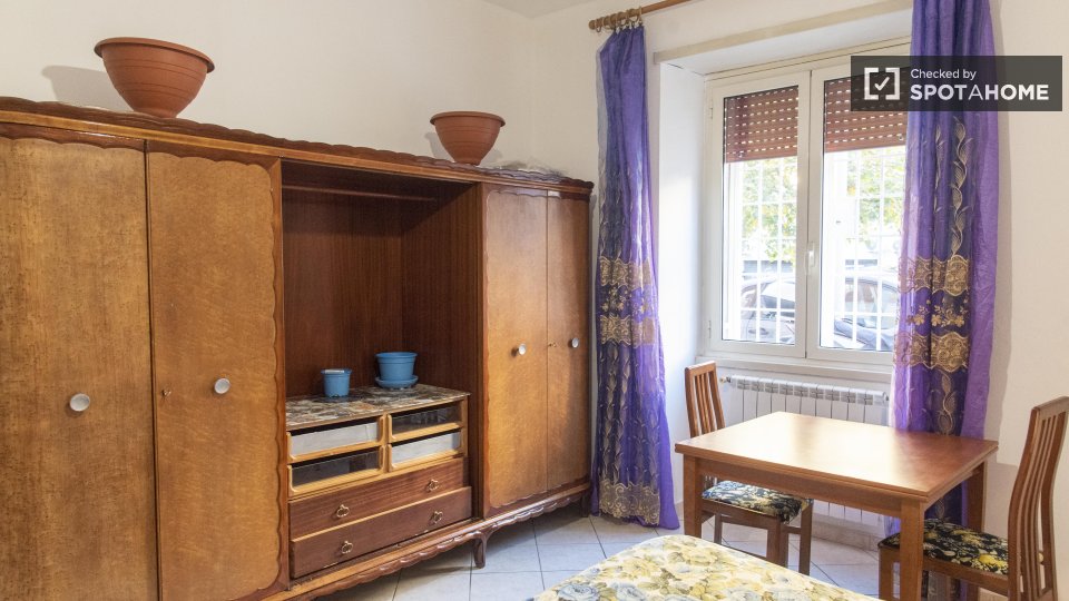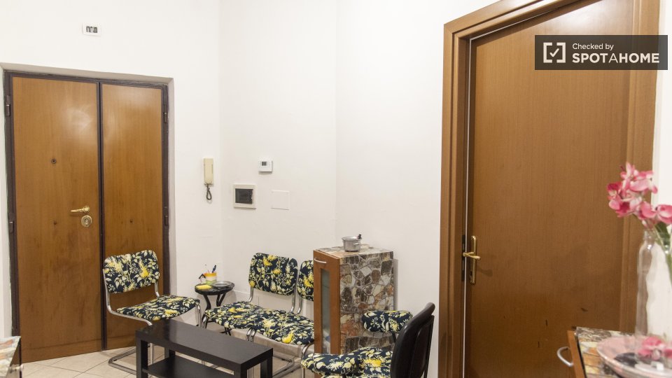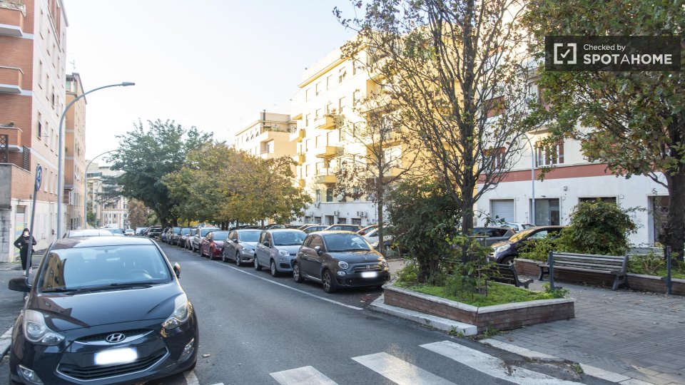 Stanze in affitto in appartamento arredato con 6 camere da letto in Via Aldo Barbaro. L'immobile si trova al 1° piano di un edificio con ascensore. La proprietà comprende balcone.