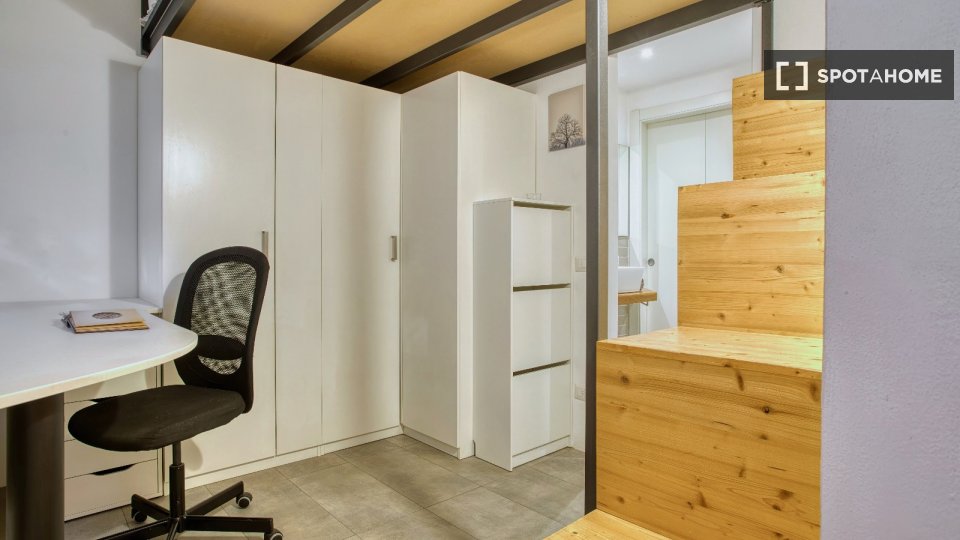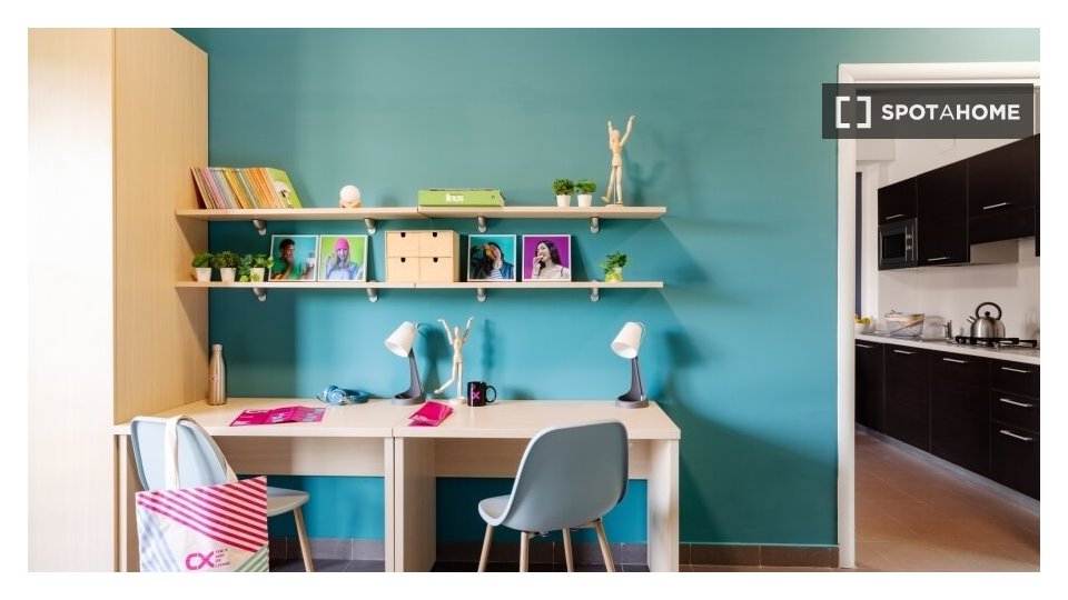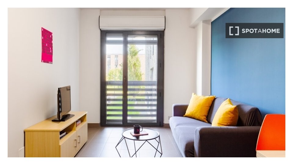 Monolocale con cucina, letto singolo e bagno. **1.540 posti letto**, suddivisi in 17 unità su un'area di **50.000 mq** con **15.000 mq di aree verdi**. Questo campus è **il più grande alloggio per studenti in Italia**. Gli spazi architettonici...