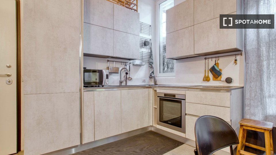 Benvenuti nella vostra prossima casa a Padova, Milano! Questo monolocale completamente arredato offre comfort e praticità grazie all'aria condizionata centralizzata, alla cucina attrezzata con forno e al televisore per il vostro intrattenimento. L...