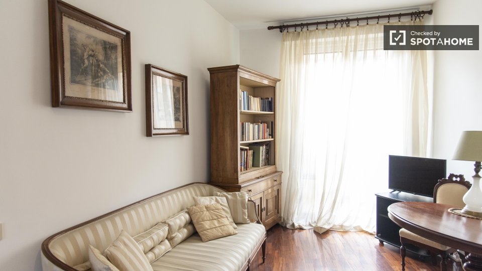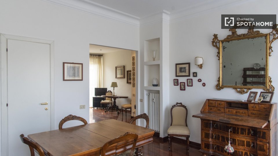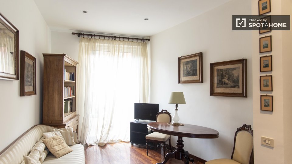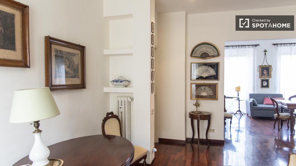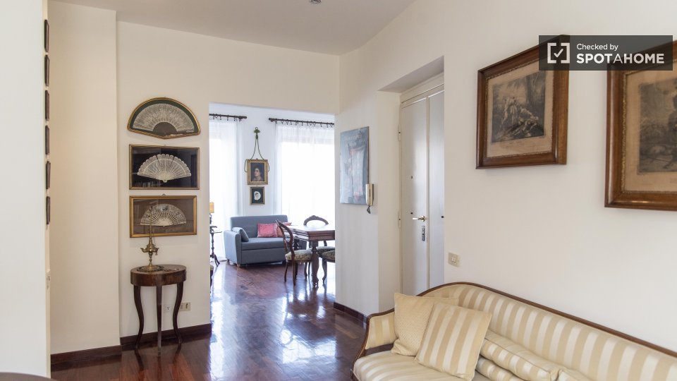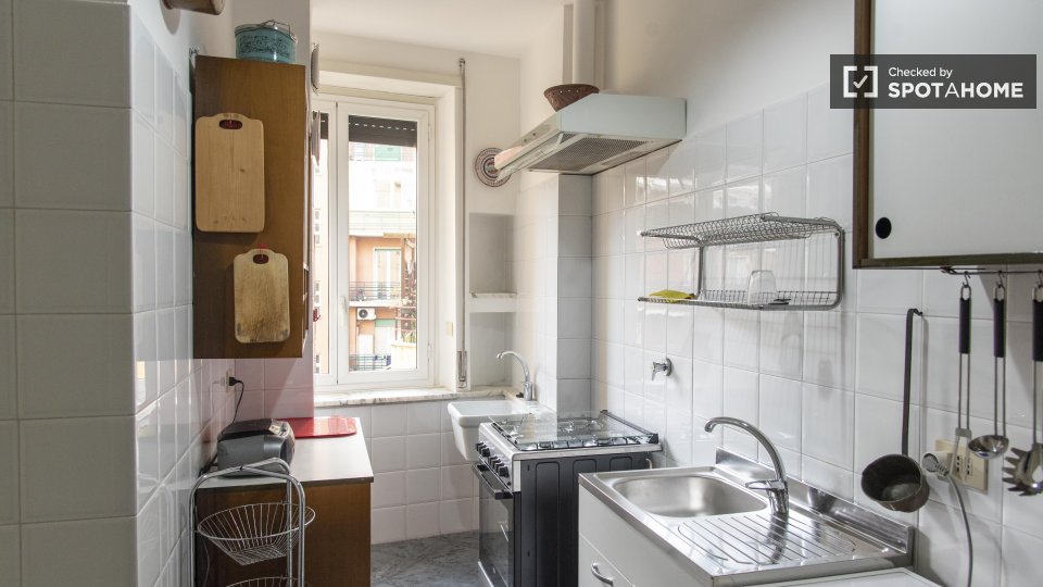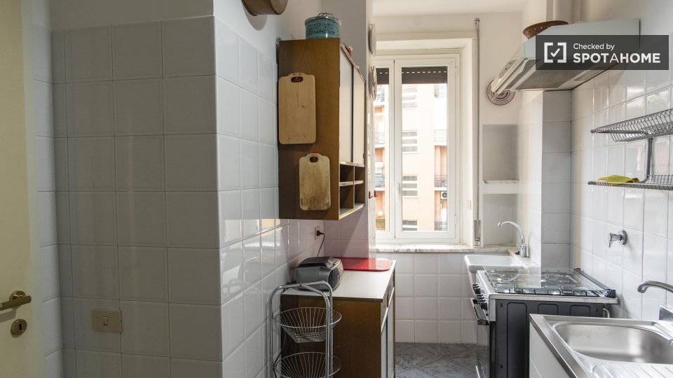Entrate in questo accogliente appartamento con una camera da letto nell'incantevole quartiere Nomentano, a Roma. Questo appartamento completamente arredato dispone di aria condizionata individuale, riscaldamento centralizzato e cucina attrezzata, ...