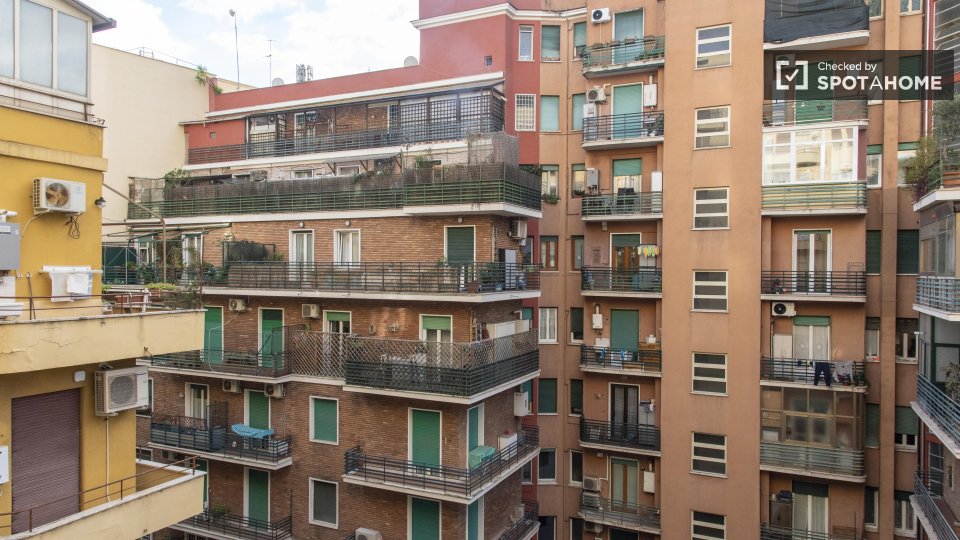 Questo elegante appartamento con 3 camere da letto a Tuscolano Nord, Roma, è completamente arredato e dispone di lavatrice privata. È dotato di aria condizionata individuale, cucina attrezzata e Wi-Fi affidabile, che lo rendono uno spazio abitativ...