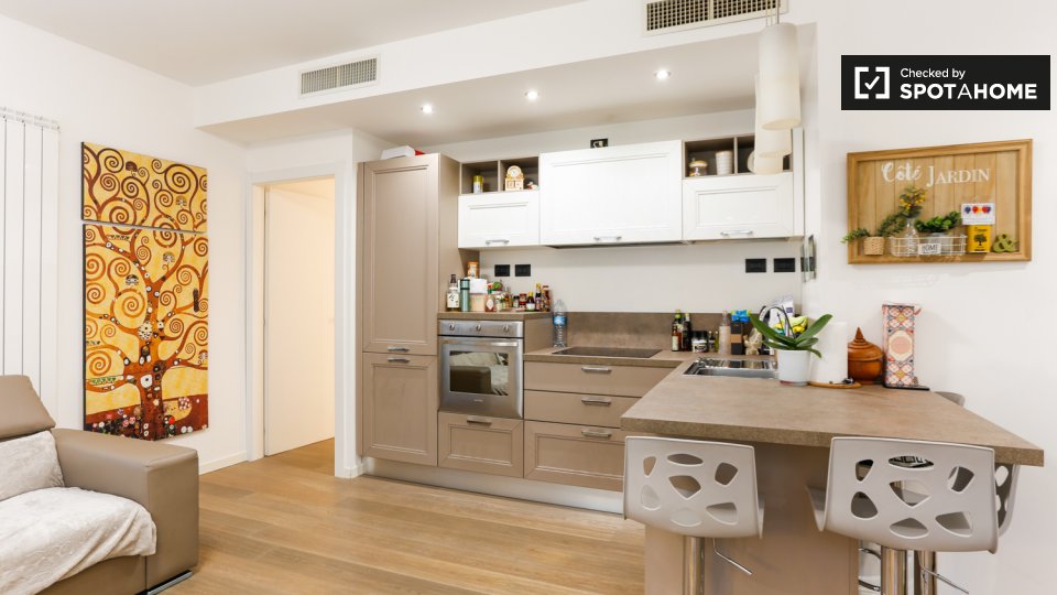 Scopri un grazioso appartamento con una camera da letto a San Siro, Milano. L'appartamento è completamente arredato e dotato di elettrodomestici moderni, tra cui lavatrice, lavastoviglie, forno e TV. L'immobile si affaccia sull'esterno e dispone d...