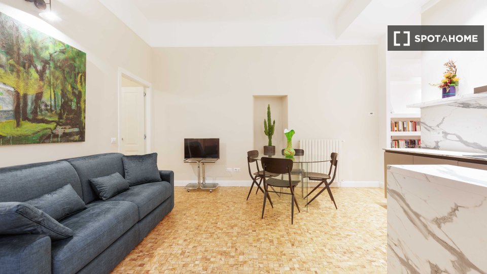 Raffinato bilocale di circa 75mq situato al 1° piano di un bel palazzo d'epoca, l'appartamento è stato recentemente ristrutturato da un architetto con cura dei dettagli, dotato di aria condizionata e pregiato pavimento in parquet. Dall'ingresso si...