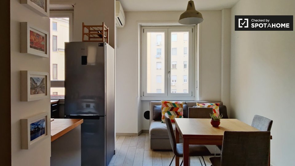 Desideri vivere nel cuore di Milano? Questo appartamento arredato con una camera da letto offre un confortevole spazio abitativo dotato di comfort moderni. Goditi una cucina completamente attrezzata, TV, lavastoviglie e lavatrice privata. L'appart...