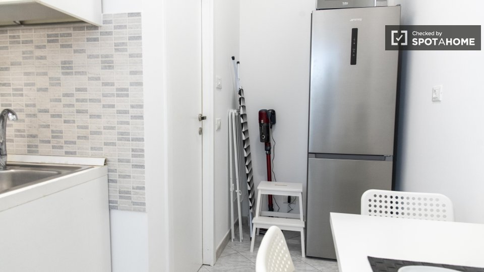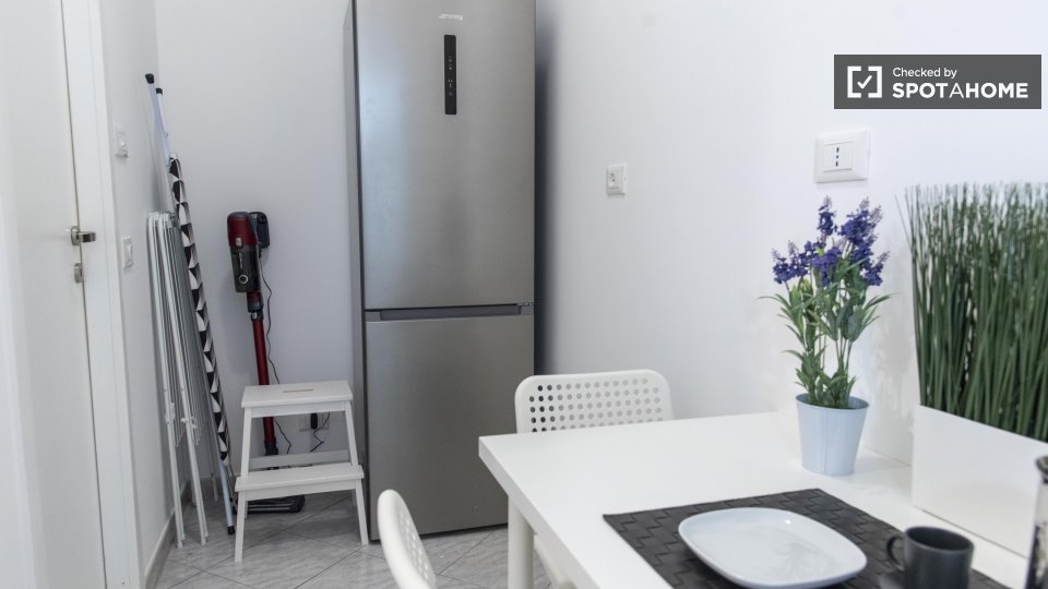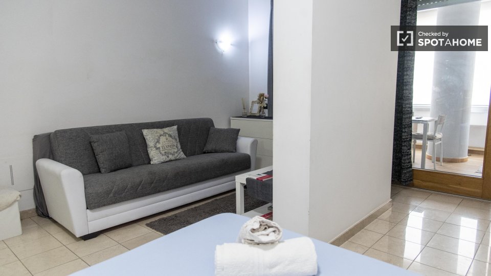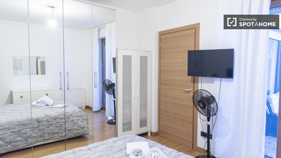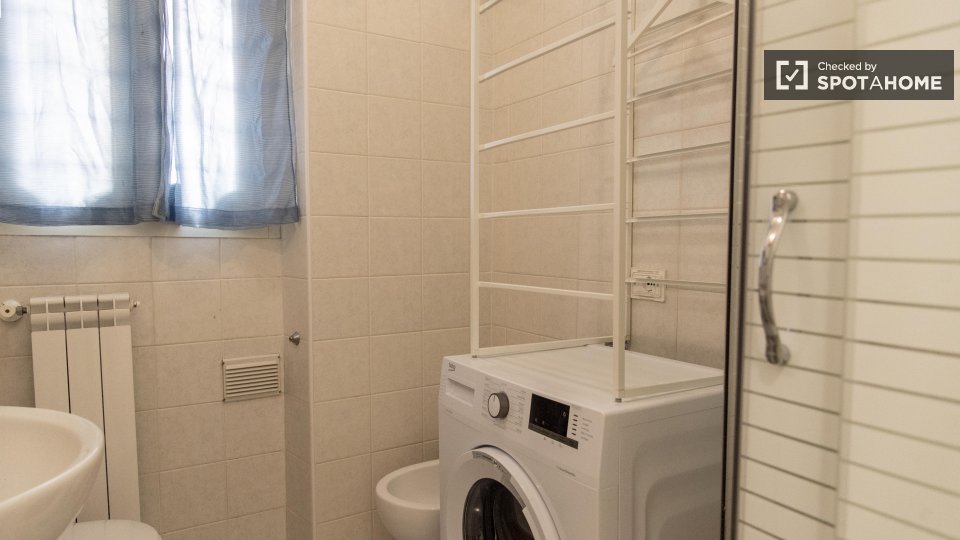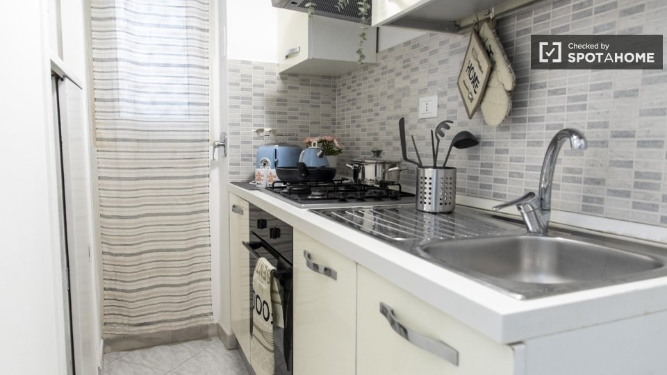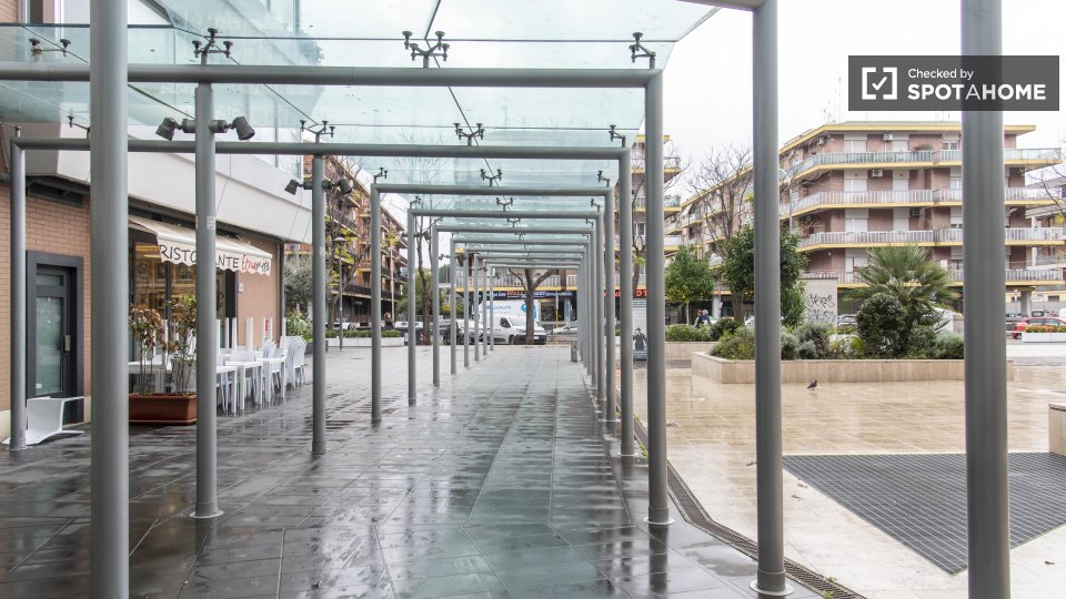Benvenuti in questo appartamento con una camera da letto, perfetto per professionisti, studenti e partecipanti al programma Erasmus a Casal Bertone, Roma. L'appartamento è arredato e dotato di lavatrice privata, forno, ascensore e aria condizionat...