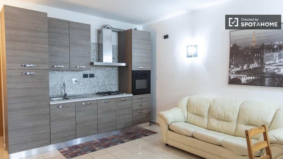 Scopri questo accogliente monolocale in affitto nel quartiere Aurelio Nord di Roma. Il monolocale è completamente arredato e dotato di comfort essenziali come lavatrice, TV e cucina attrezzata. È consentito fumare all'interno della proprietà e la ...