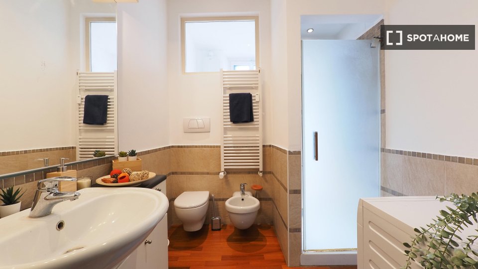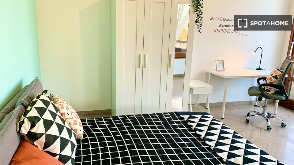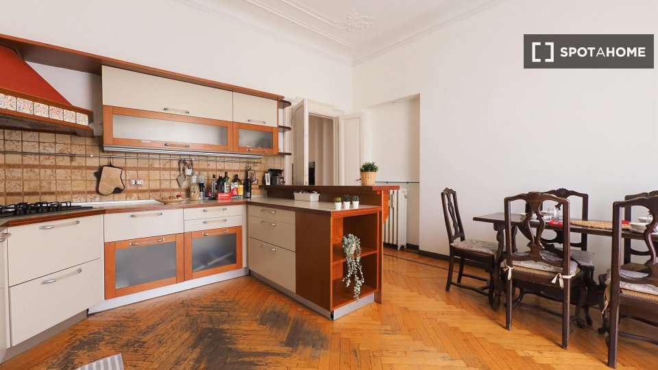 Questo appartamento condiviso con 5 camere da letto a Campo di Marte offre un soggiorno confortevole con tutte le spese incluse. L'appartamento è completamente arredato e la cucina è dotata di comfort essenziali, tra cui forno e lavatrice. Profess...