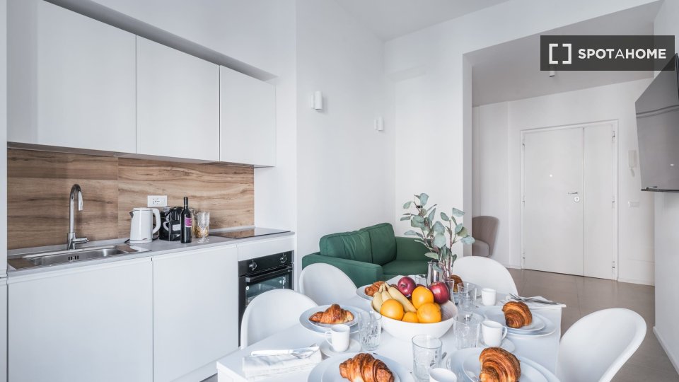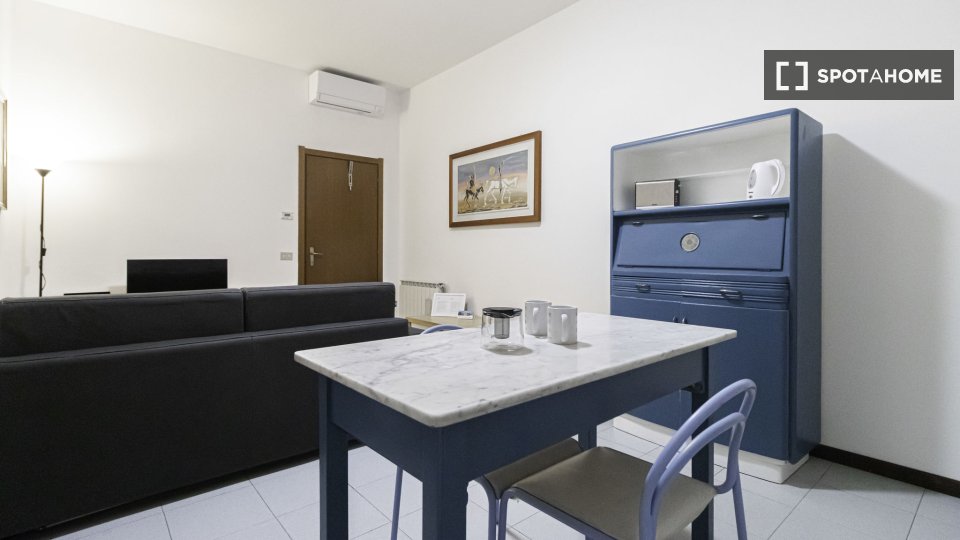 Questo monolocale in affitto a Niguarda-Ca' Granda, Milano, è completamente arredato e dotato di comfort pratici. I condizionatori individuali garantiscono una confortevole regolazione della temperatura e il riscaldamento elettrico fornisce calore...