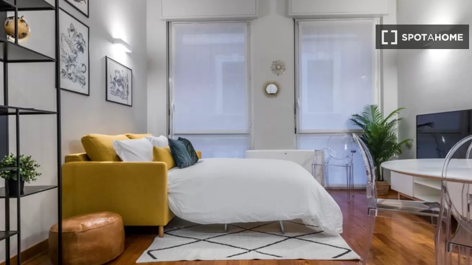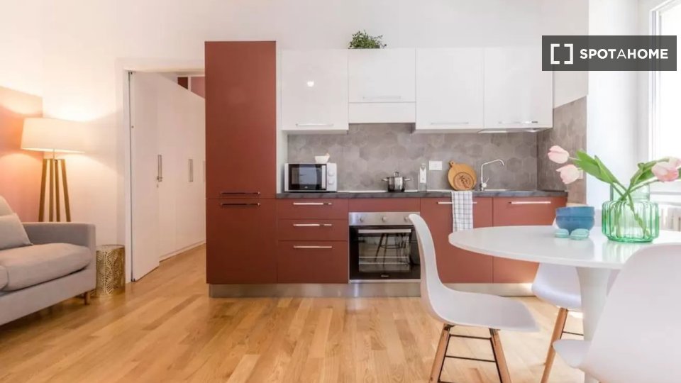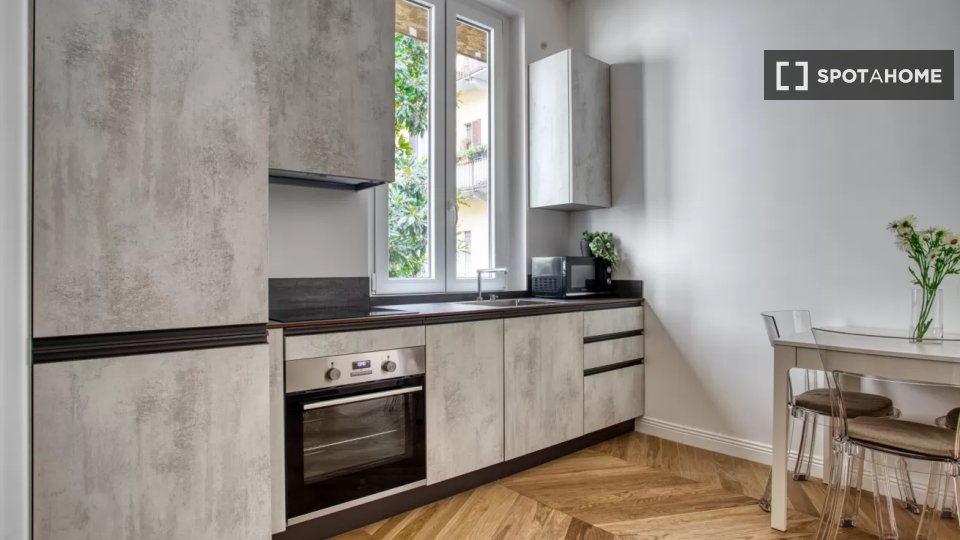 Benvenuti in questo appartamento arredato con una camera da letto disponibile per l'affitto a Brera, Milano. Questo accogliente appartamento è completamente attrezzato con comfort moderni come TV, cucina completamente attrezzata con forno e serviz...