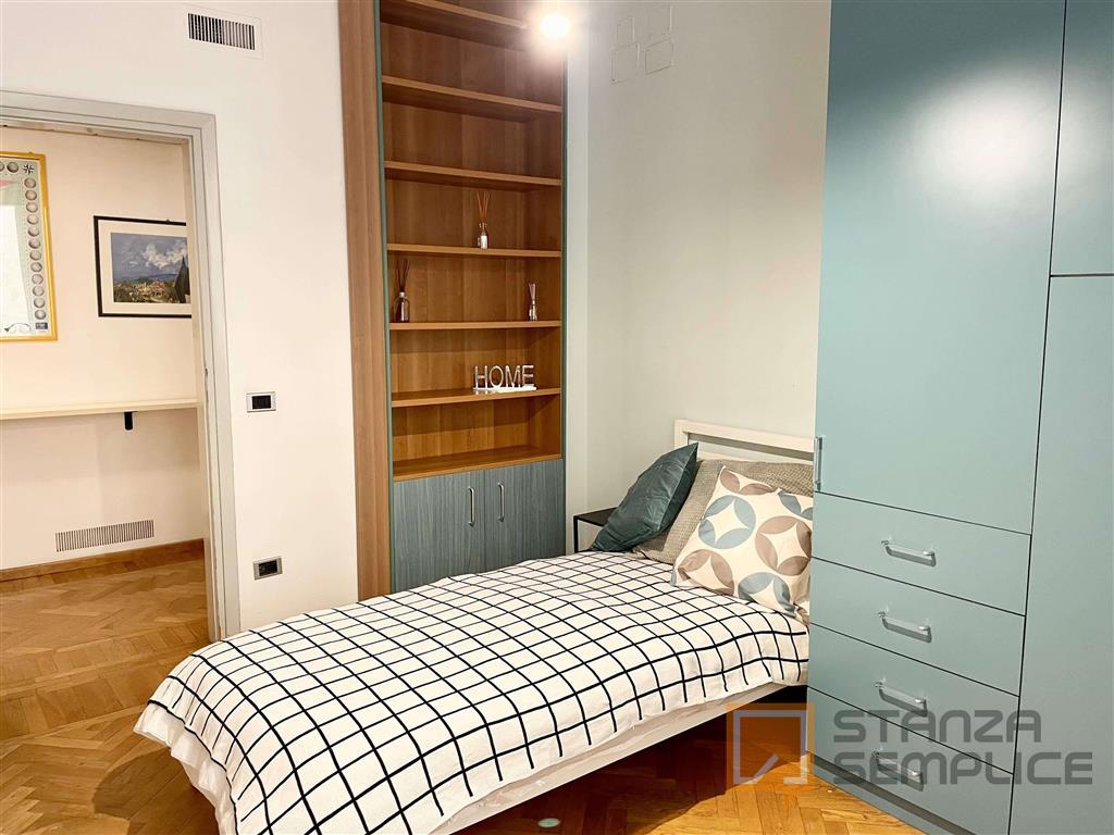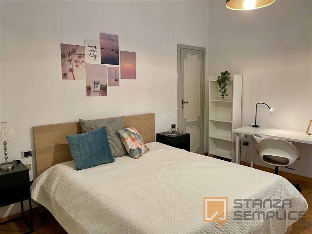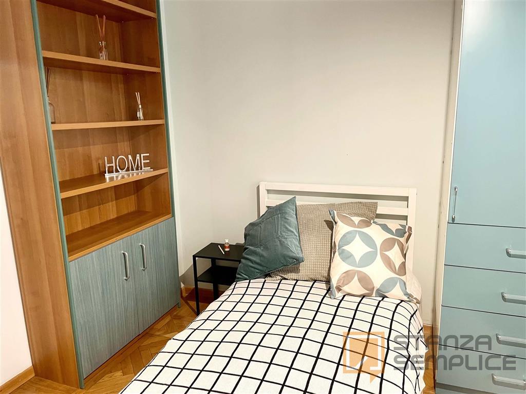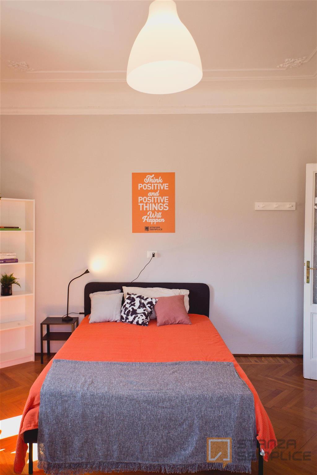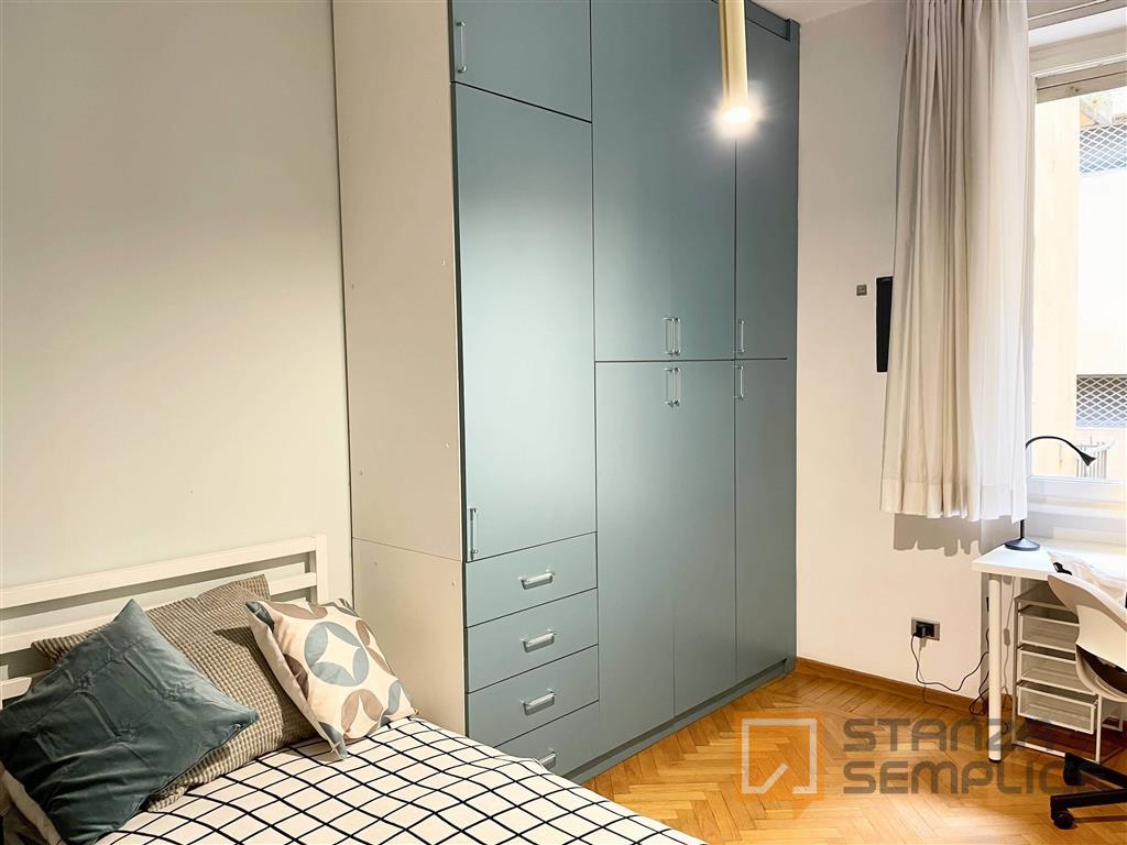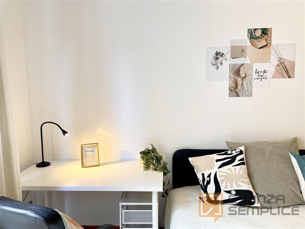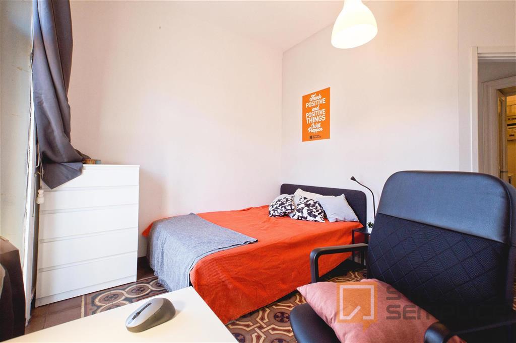 Stanza singola luminosa e completamente arredata, ideale per studenti che cercano comfort e tranquillità. La camera è dotata di letto da una piazza e mezzo, armadio capiente, scrivania con sedia, comodino e altri arredi funzionali per lo studio e ...