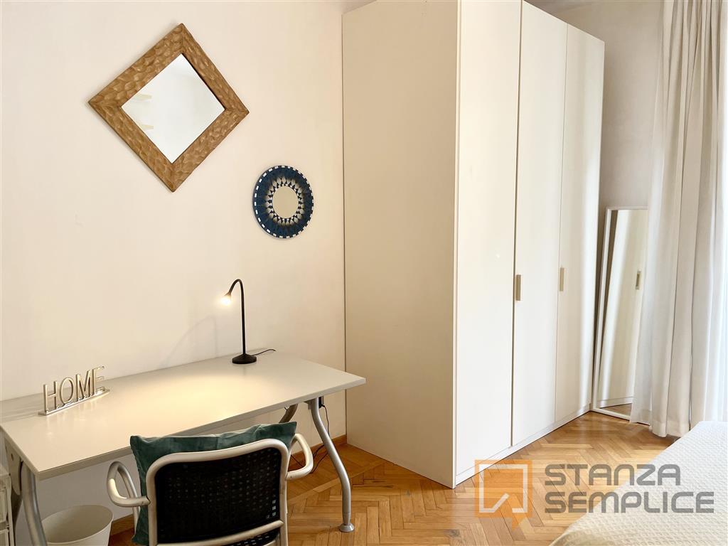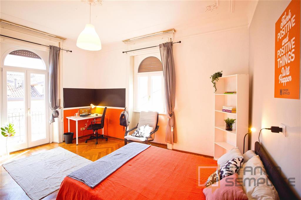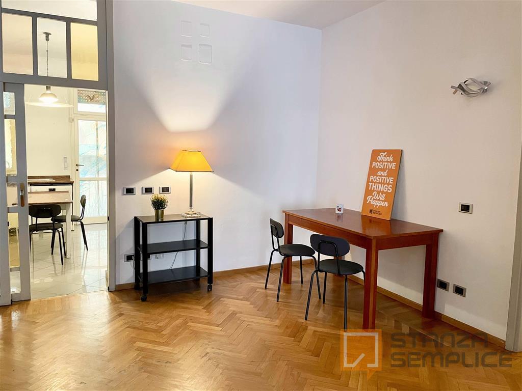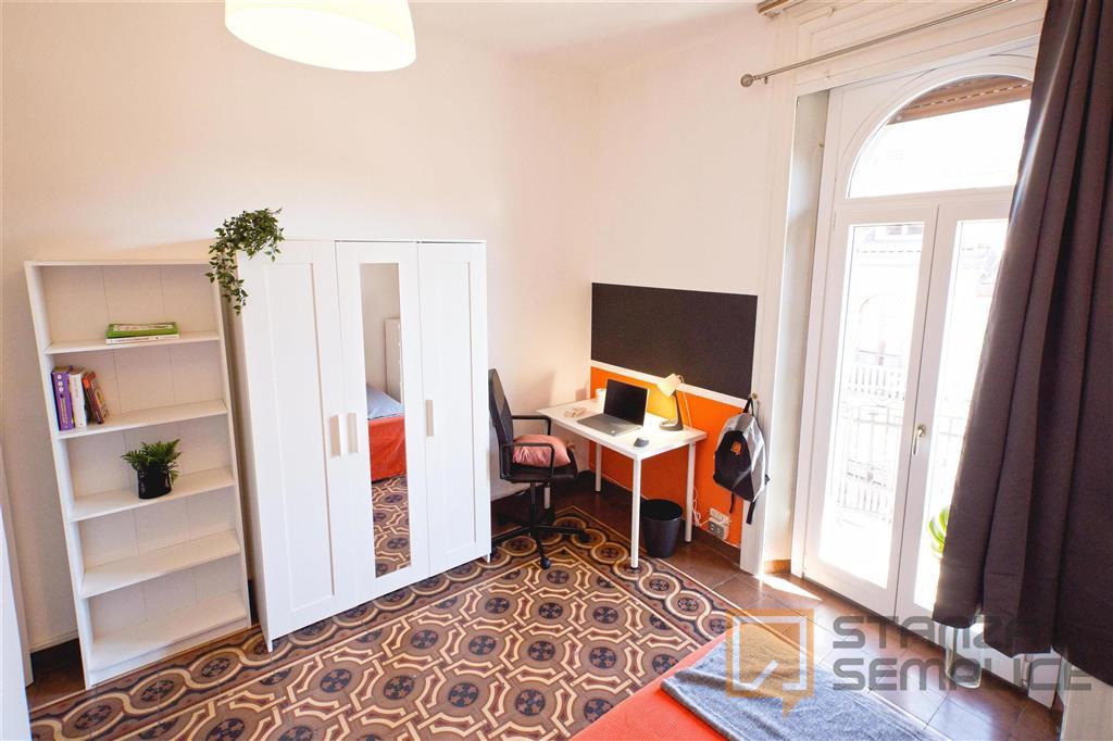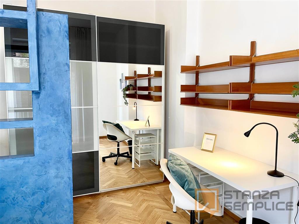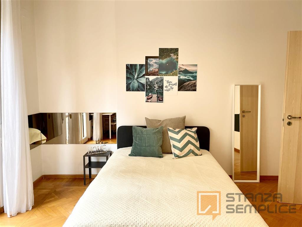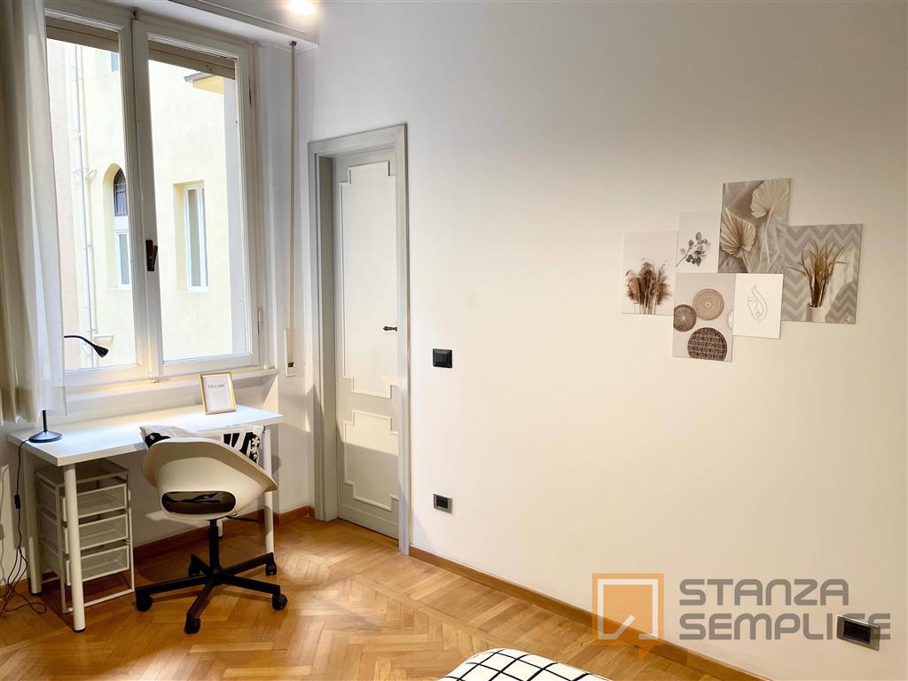 Stanza singola luminosa e completamente arredata, ideale per studenti che cercano comfort e tranquillità. La camera è dotata di letto da una piazza e mezzo, armadio capiente, scrivania con sedia, comodino e altri arredi funzionali per lo studio e ...