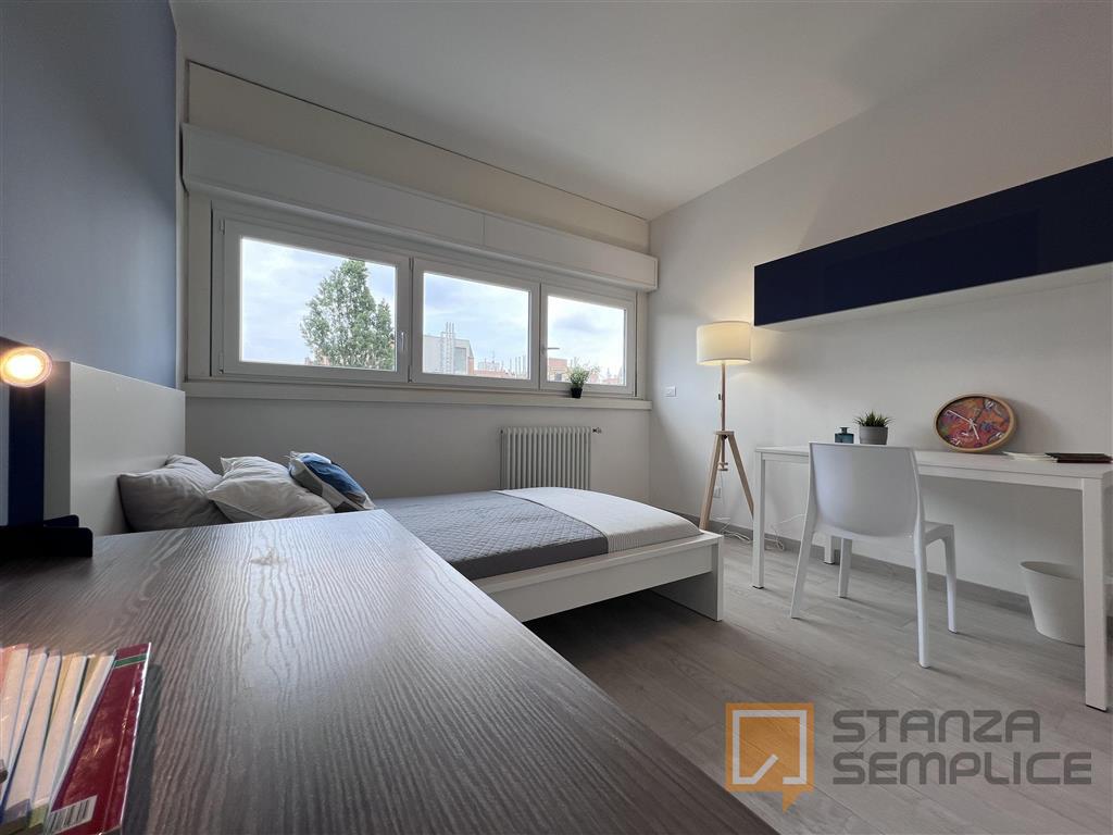 Stanza singola spaziosa, la più grande dell’appartamento, arredata con stile moderno per garantire massima comodità agli studenti. Dotata di letto ad una piazza e mezzo, ampia zona studio e poltroncina relax, offre un ambiente ideale per chi desid...