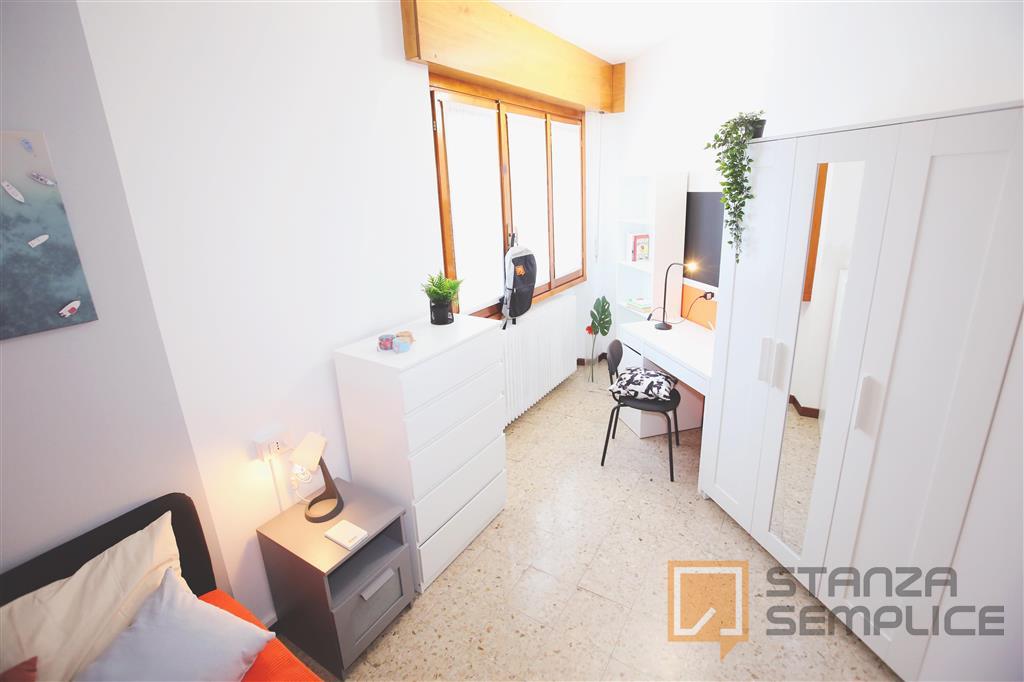 Stanza singola, luminosa e completamente arredata, ideale per studenti che cercano tranquillità e comfort. È dotata di letto singolo, armadio a 3 ante, cassettiera, libreria, scrivania con portaoggetti, comodino, scarpiera e tendaggi. Situata in u...