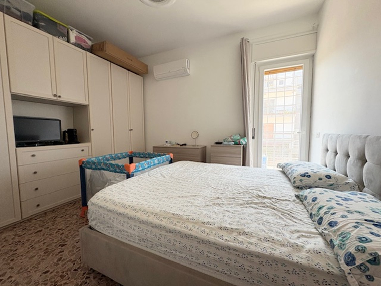 Pomezia, Torvaianica, trilocale composto da salone con porta finestra con accesso al balcone, cucina abitabile con portafinestra che da accesso al balcone, servizio finestrato con doccia, due ampie camere da letto con finestra, di cui una con usci...