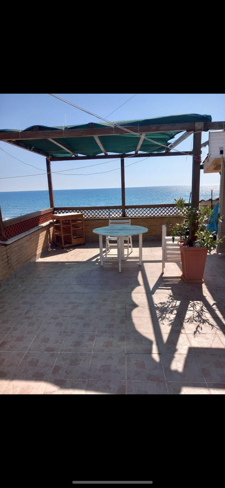 Torvaianica centro, attico con palazzina in cortina, posto al quinto piano con ascensore fino al quarto, composto da luminoso saloncino e angolo cottura a scomparsa con porta finestra che da accesso a un ampio terrazzo con pergotenda elettrica e s...