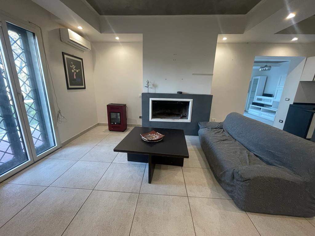 Aprilia, Campo di Carne, piano terra di una villa unifamiliare. L'immobile si presenta interamente ristrutturato e si compone di un salone doppio finestrato con camino, cucina a vista separata da un' isola con top in grafite, un ampio soggiorno co...