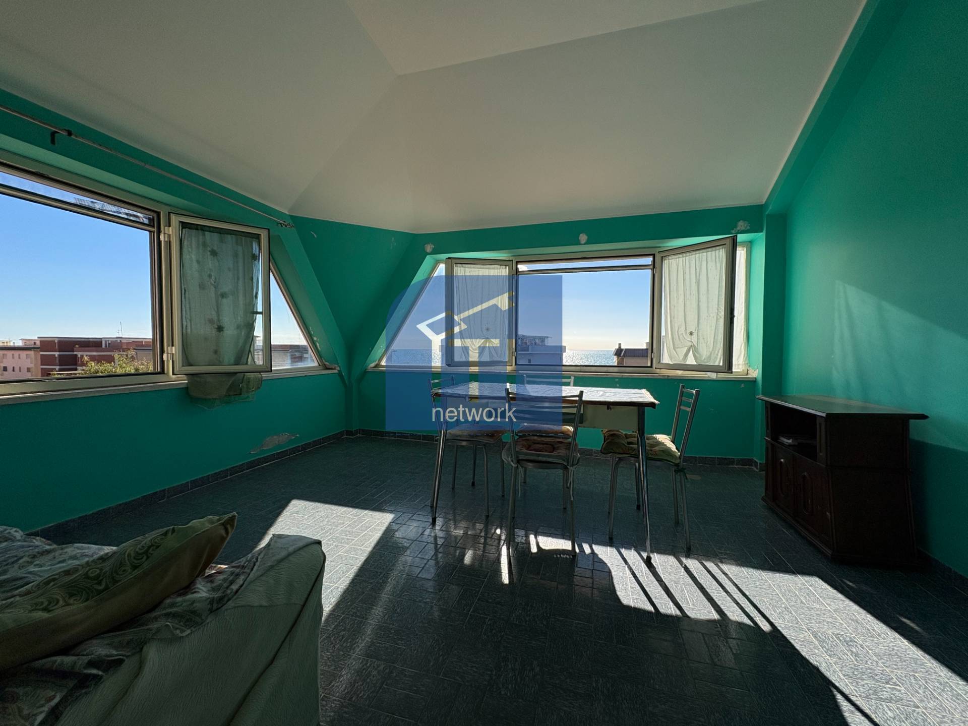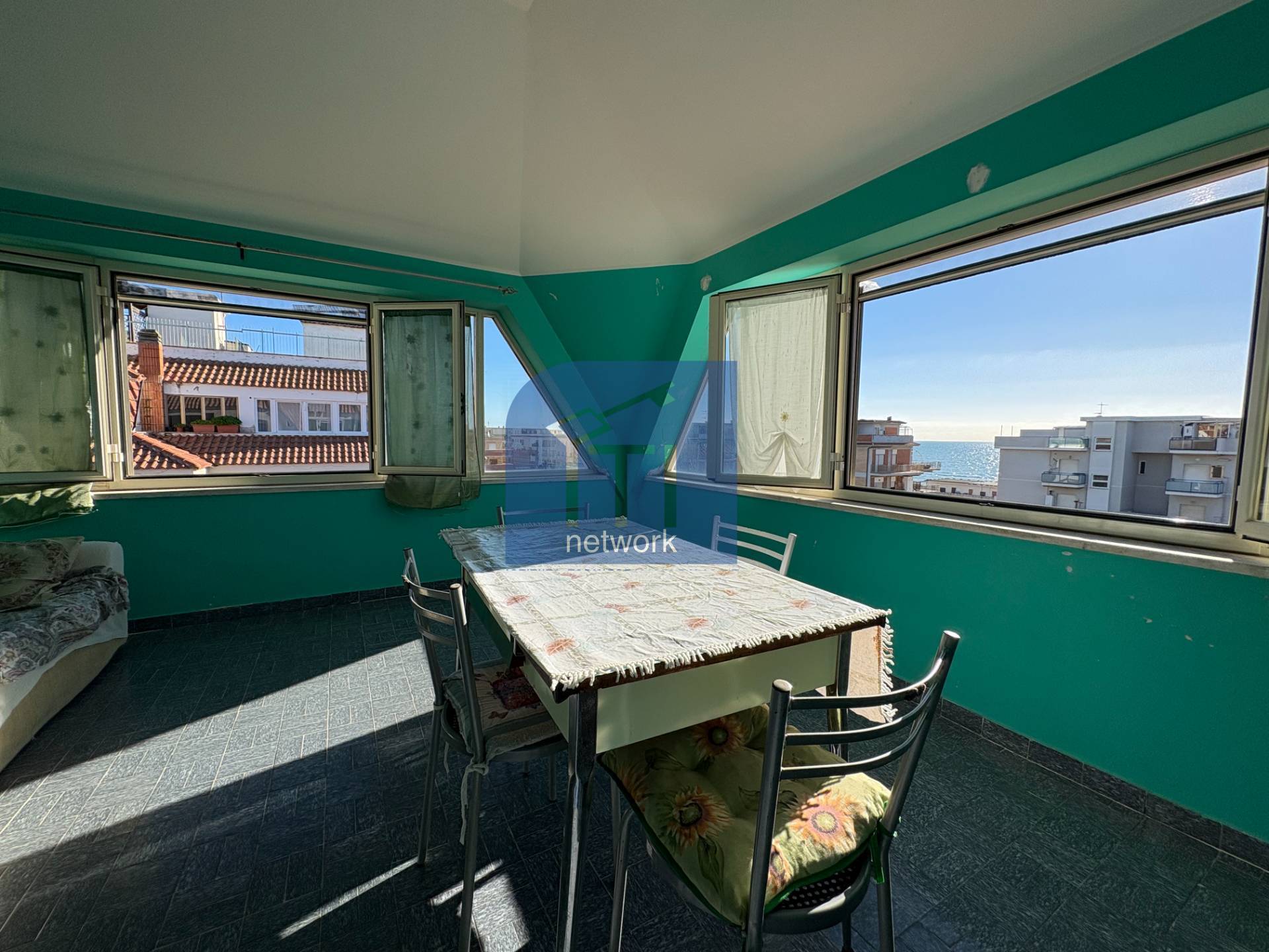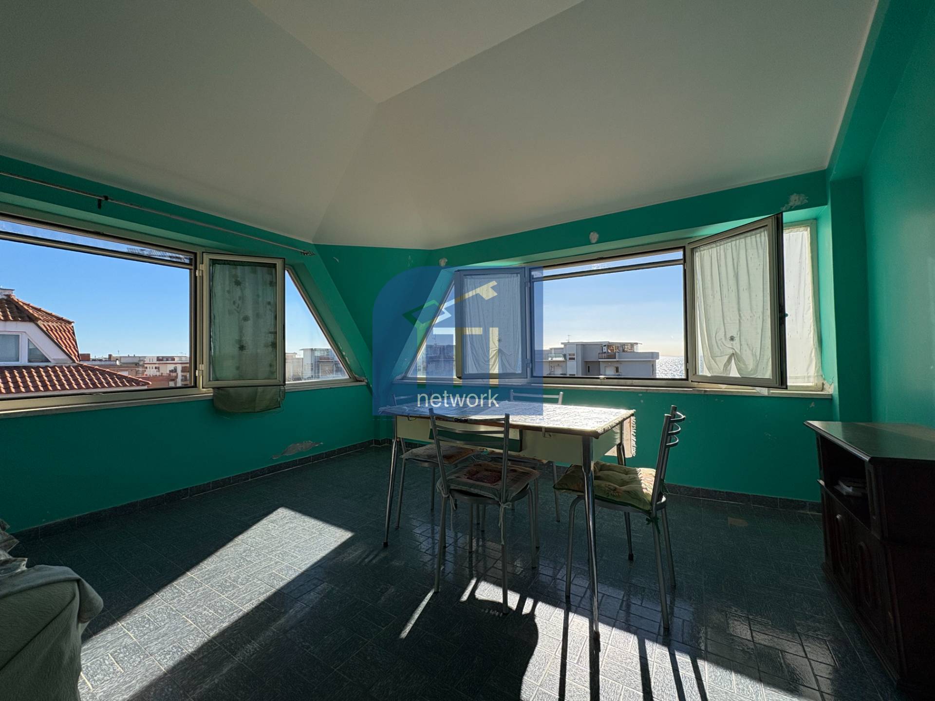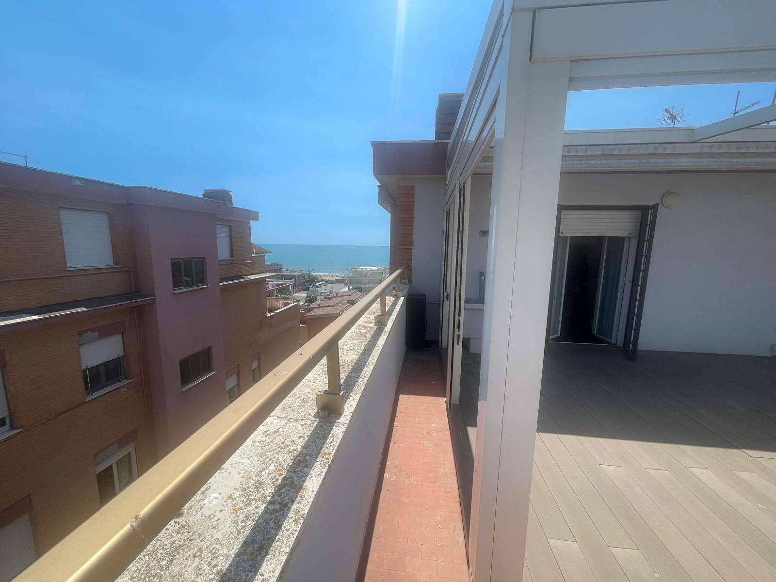 Marina di Ardea, Centro Regina, attico di ampia metratura, vista mare, a 100 mt dalla spiaggia, ristrutturato con box e cantina. L'immobile è composto da ingresso, ampio salone con uscita al delizioso terrazzo chiuso vista mare, camera matrimonial...