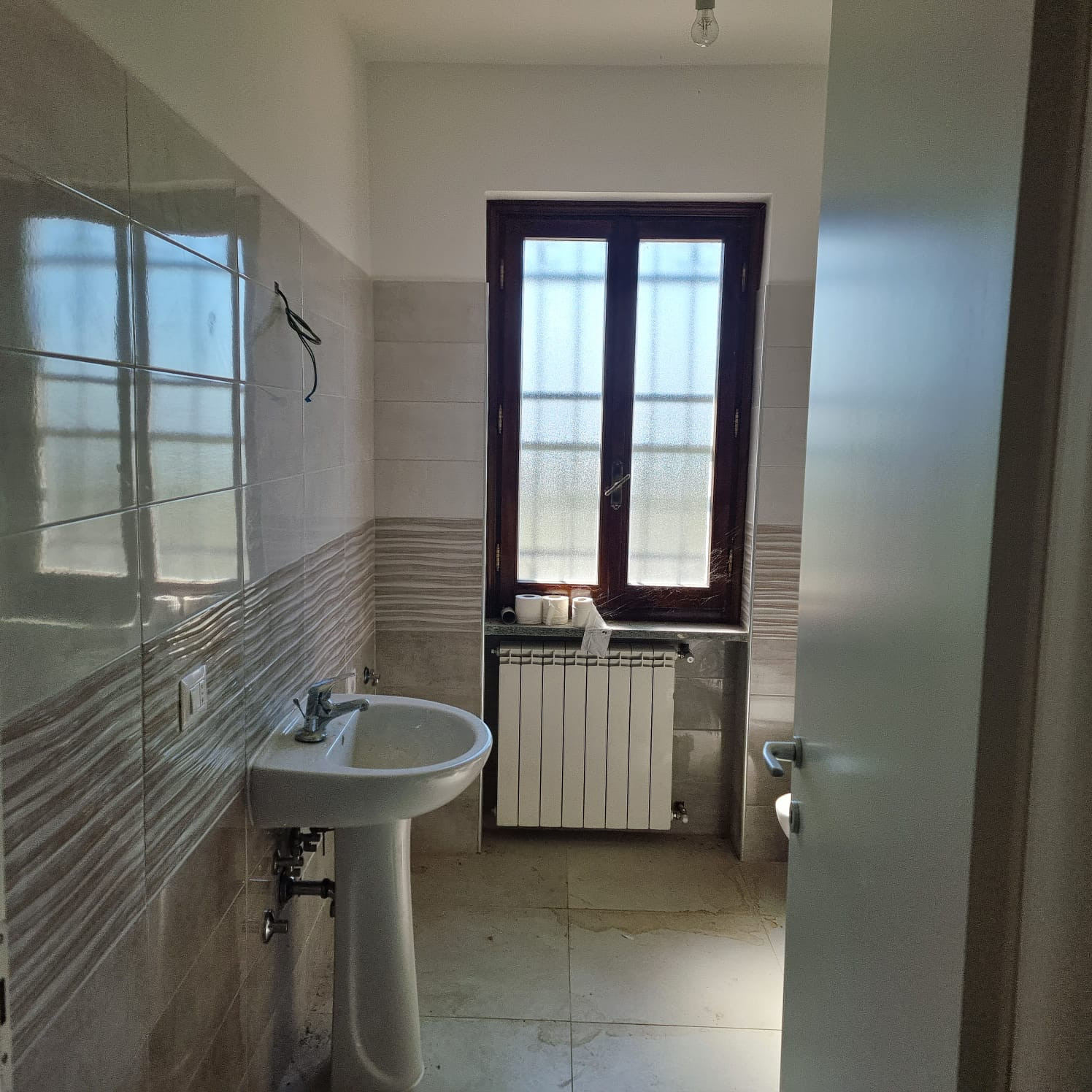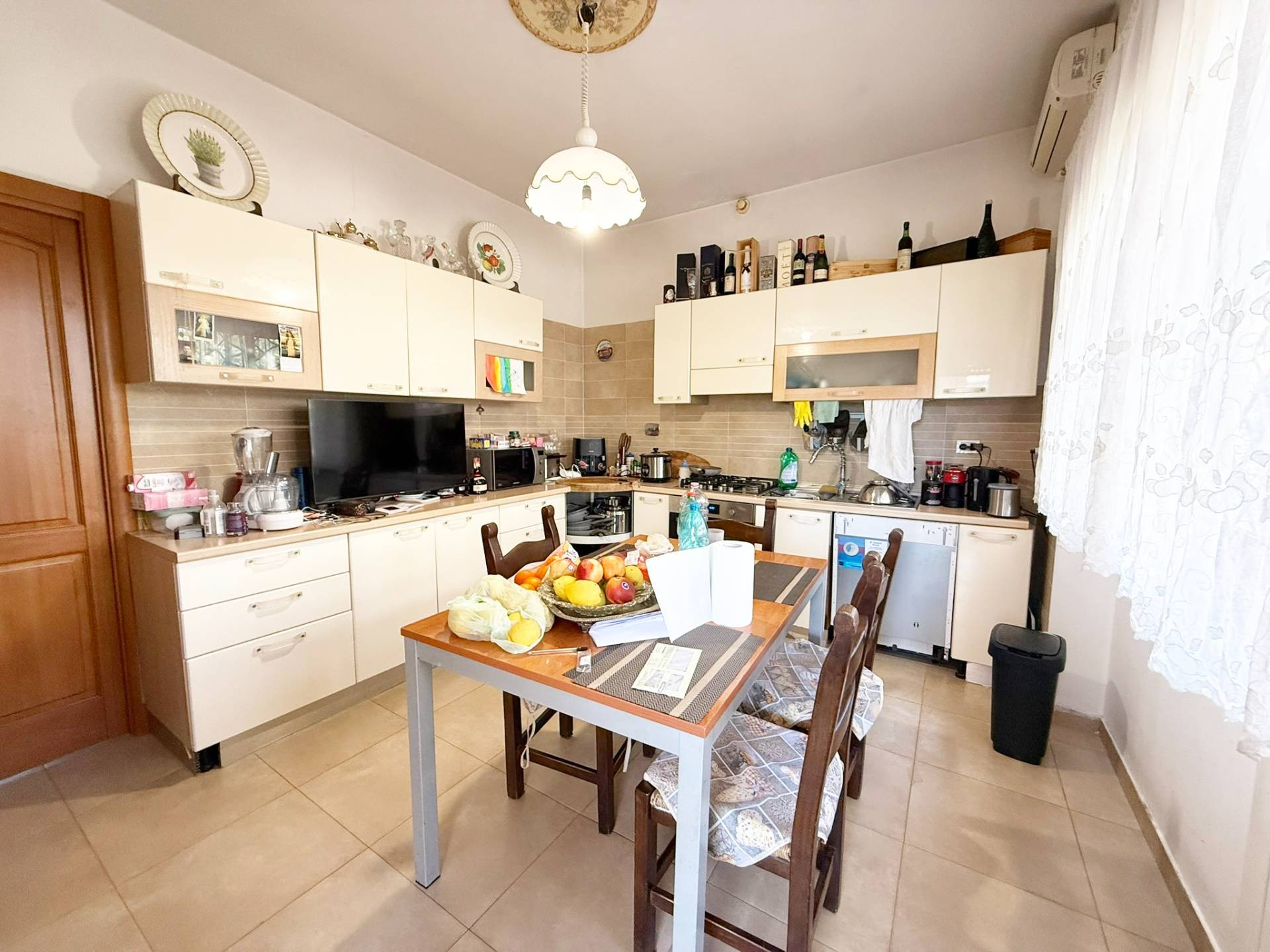 Aprilia, zona Toscanini, appartamento quarto piano composto da ampio salone con porta finestra che affaccia sul balcone, cucina abitabile con porta finestra sul balcone, camera matrimoniale, camera, due servizi con doccia, box auto e cantina L'imm...