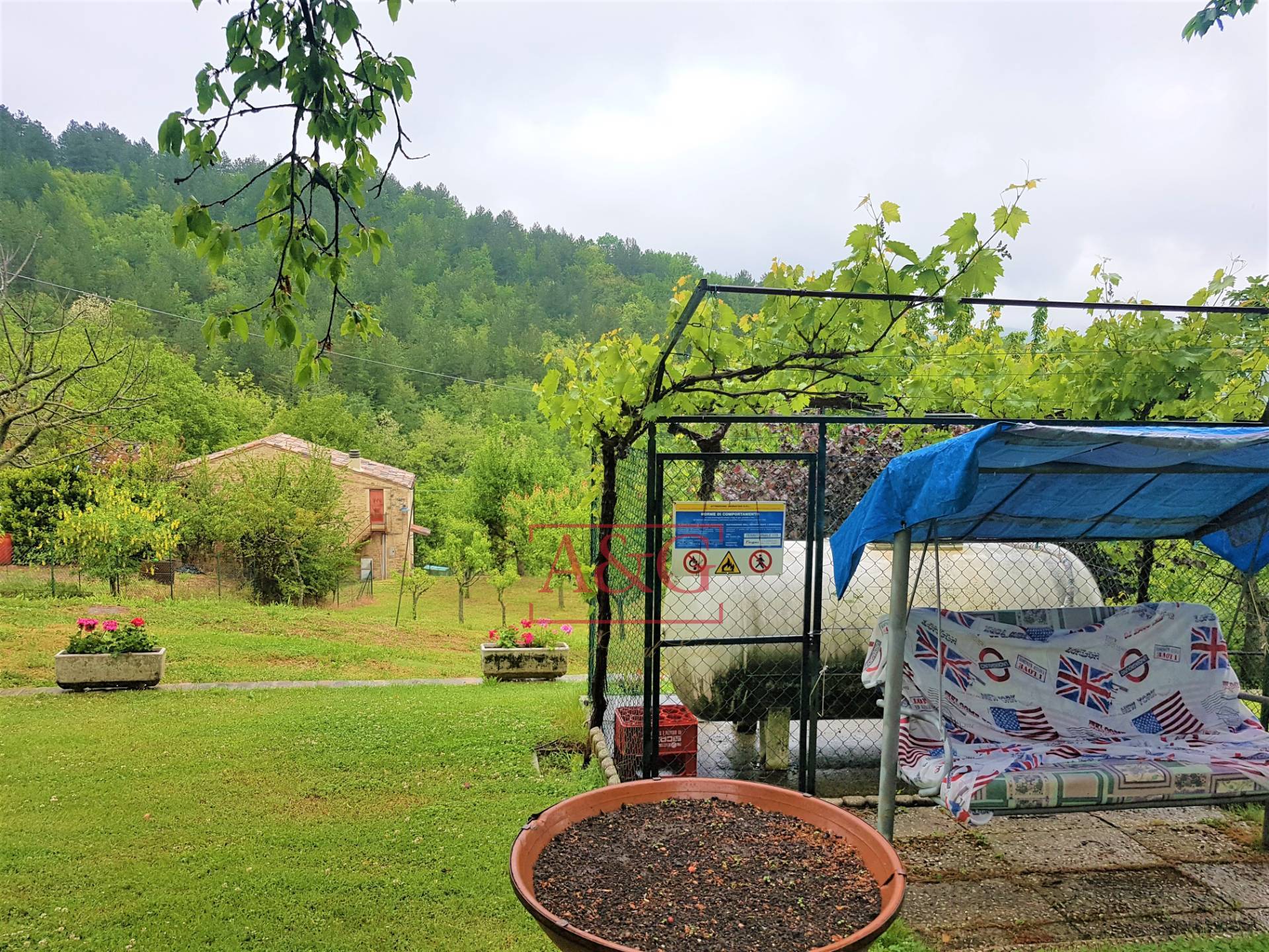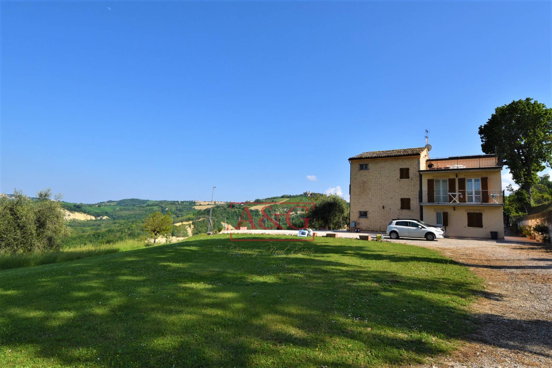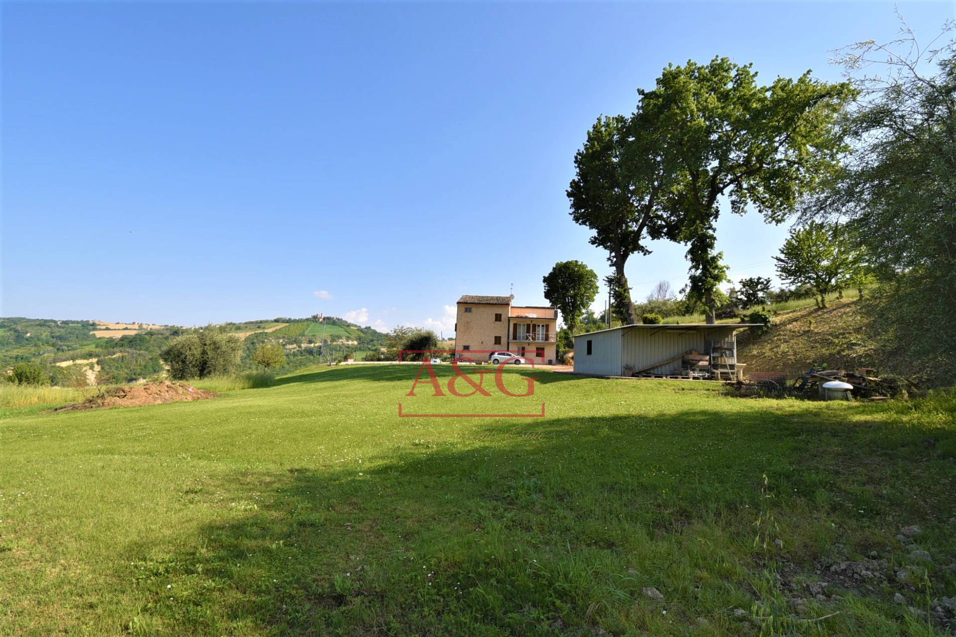 Casale con terreno annesso e accessorio uso deposito, vendesi a Montappone, Fermo, Marche ,Italia. In posizione ottimale, a poca distanza dal paese, con accesso esclusivo su classico giardino all'italiana e terreno annesso di circa 15.000 mq, ven...