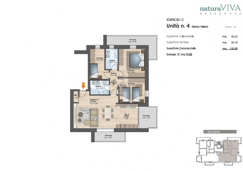 In un contesto completamente abitativo, in zona Borgo Padova, nasce "Natura Viva" un nuovo progetto residenziale composto da appartamenti tricamere con garage doppi e in classe A4. L'appartamento al piano terra, distribuito su 126mq commerciali, ...