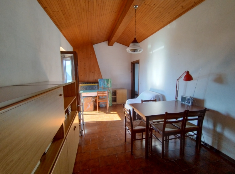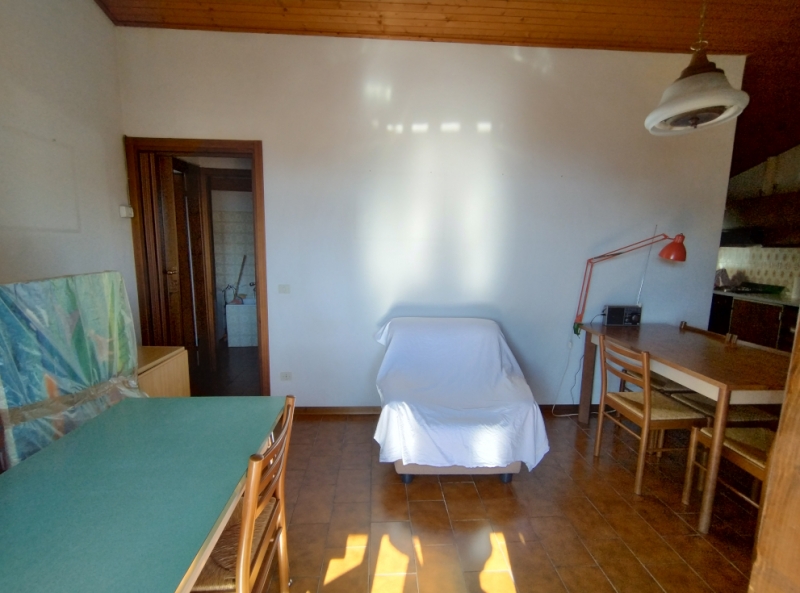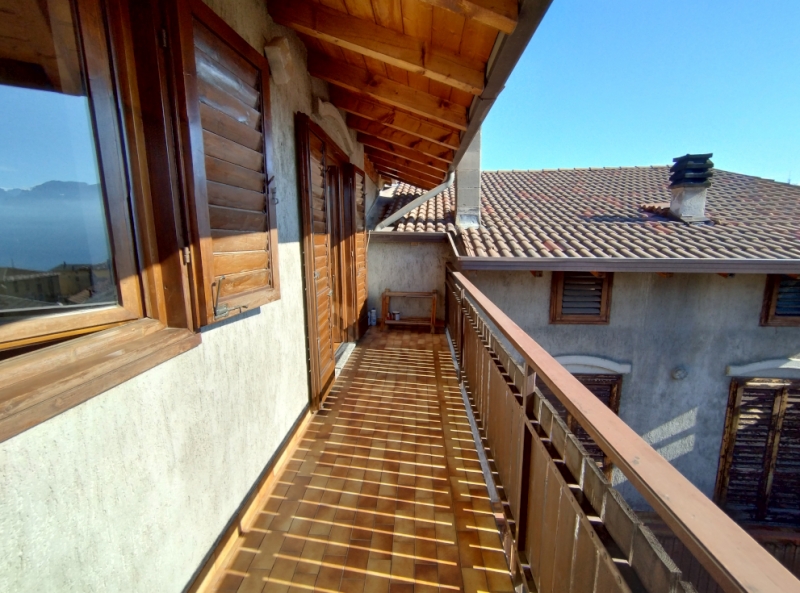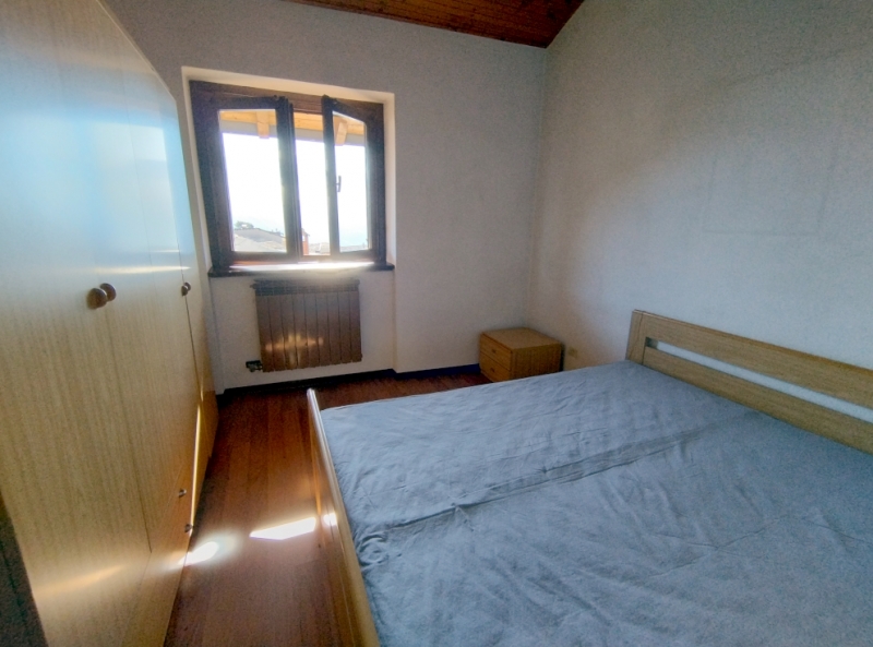 Appartamento molto caratteristico, posto al primo ed ultimo piano e libero su tre lati. Soggiorno con camino a legna e soppalco, angolo cottura, due camere matrimoniali, bagno. Terrazzino molto panoramico e soleggiato. Box. Grande giardino ad uso ...