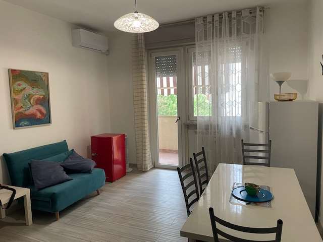AFFITTASI ELEGANTE APPARTAMENTO ARREDATO E RISTRUTTURATO, NO GAS, FORMATO DA INGRESSO SU SOGGIORNO CON DIVANO LETTO, TV, BALCONE, CUCINA ABITABILE (PIANO INDUZIONE, LAVASTOVIGLIE, COMPLETO DI STOVIGLIE), ANTIBAGNO (BOILER IBRIDO ARISTON) E BAGNO ...
