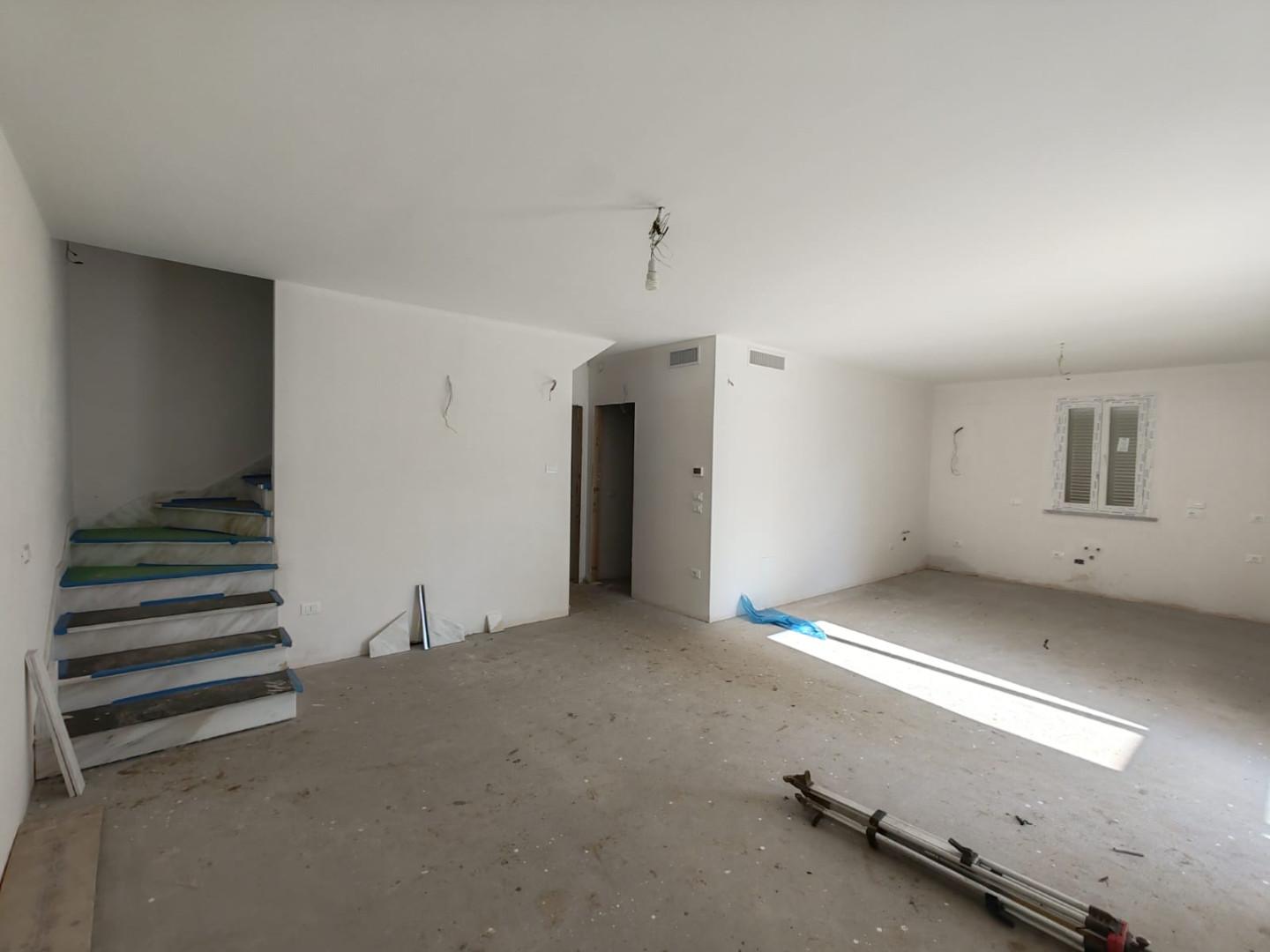 Marina di massa a ca 1100 metri dal mare In zona ben servita Porzione di Bifamiliare di nuova costruzione in fase ultimazione immersa nel verde con ampio giardino privato, disposta su un unico livello oltre terrazza a tetto composta da ingresso i...
