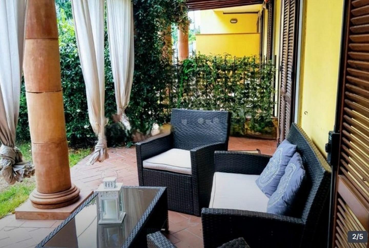 Marina di Massa a ca 200 metri dal mare appartamento tutto su un piano con due spazi esterni con caratteristica pompeiana, di cui uno con giardino, così composto: angolo cottura con ampio soggiorno, disimpegno, due camere un bagno e grande cant...