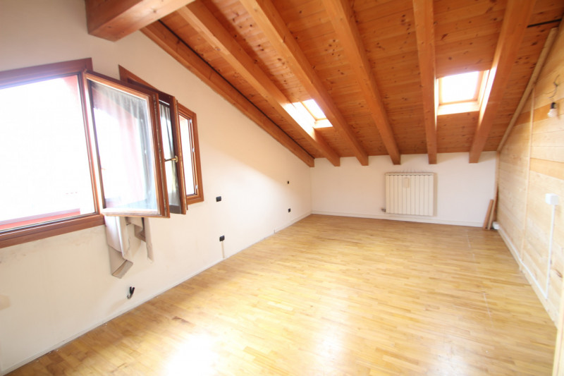 ZIANIGO - Posizionato in centro paese, proponiamo attico al terzo piano con terrazza abitabile. L'immobile, esposto ad est e ovest, è composto da uno spazioso soggiorno con camino a legna, cucina abitabile, due camere matrimoniali, bagno e lavande...