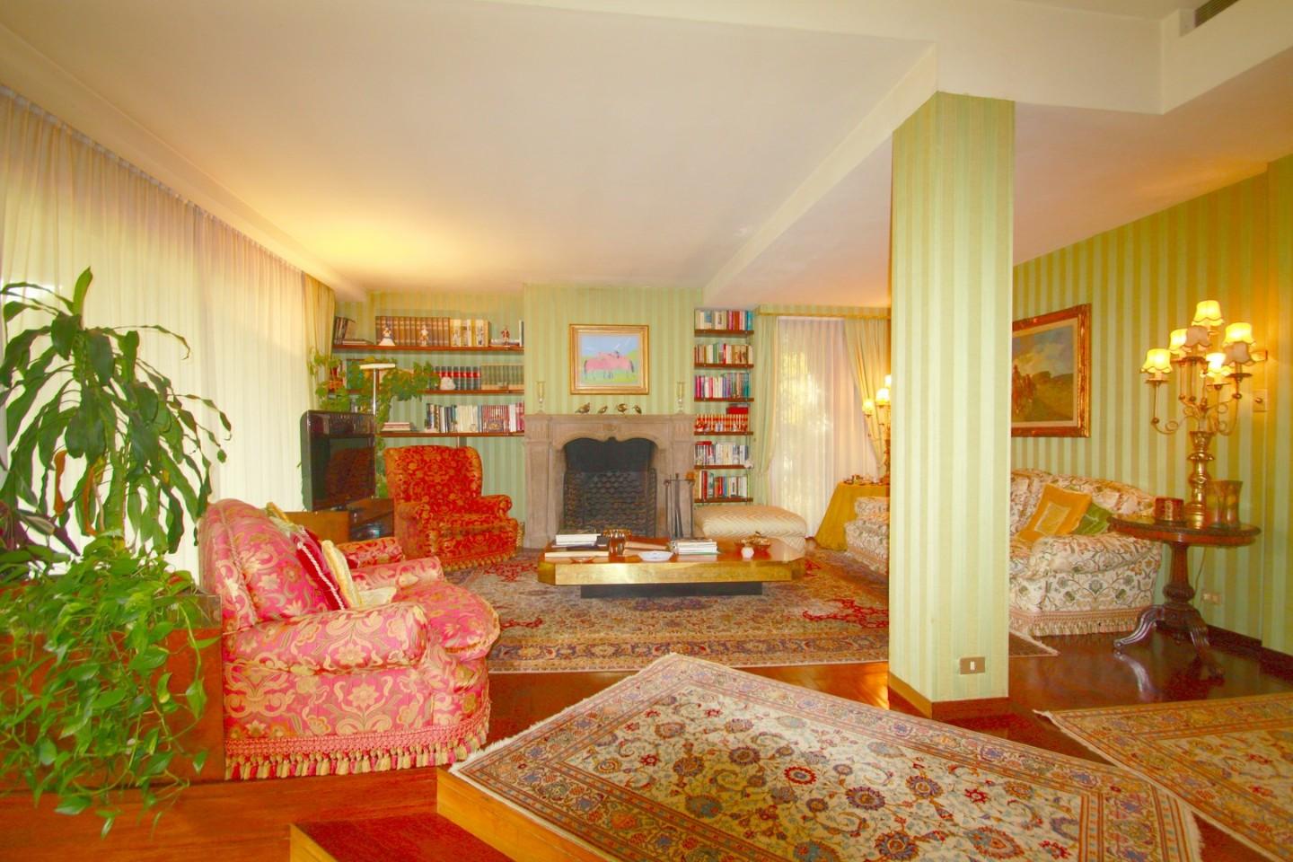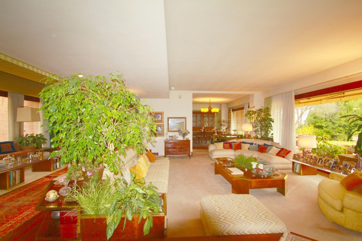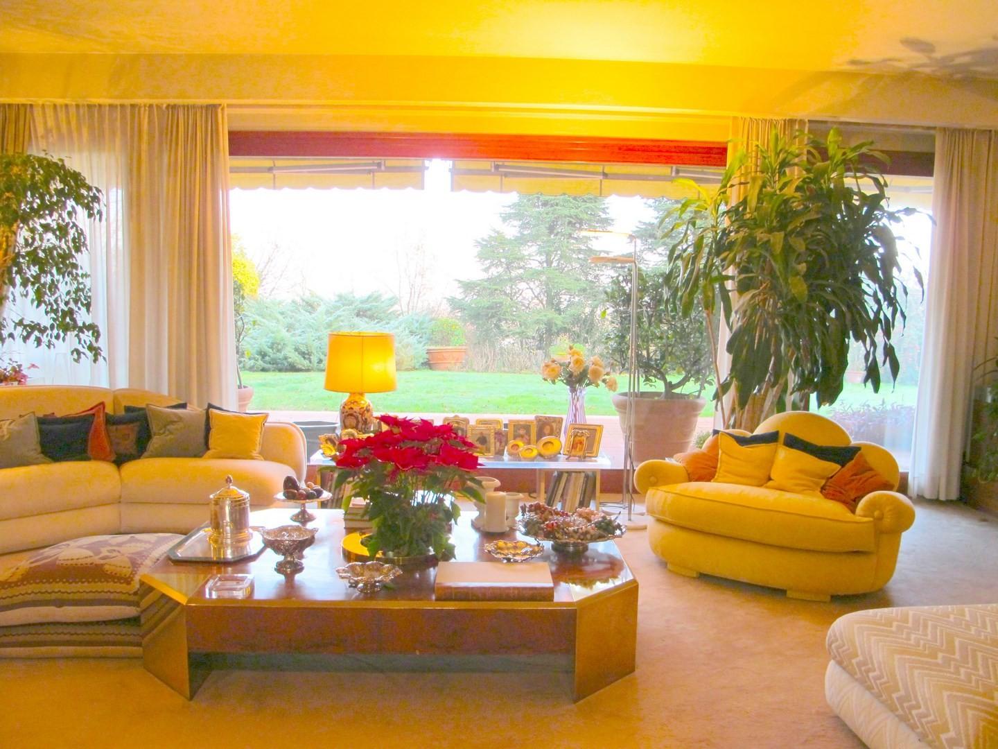 VENDESI in bellissima zona residenziale in prima collina, vicino al centro , elegante villa con parco. La villa é caratterizzata grandi superfici vetrate che si affacciano sul parco che irraggiano luce da ogni lato . Grandi Salotti di rapprese...