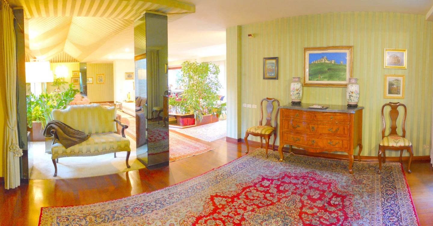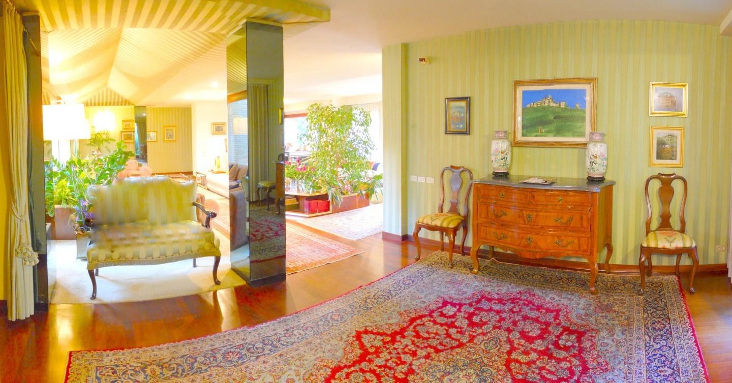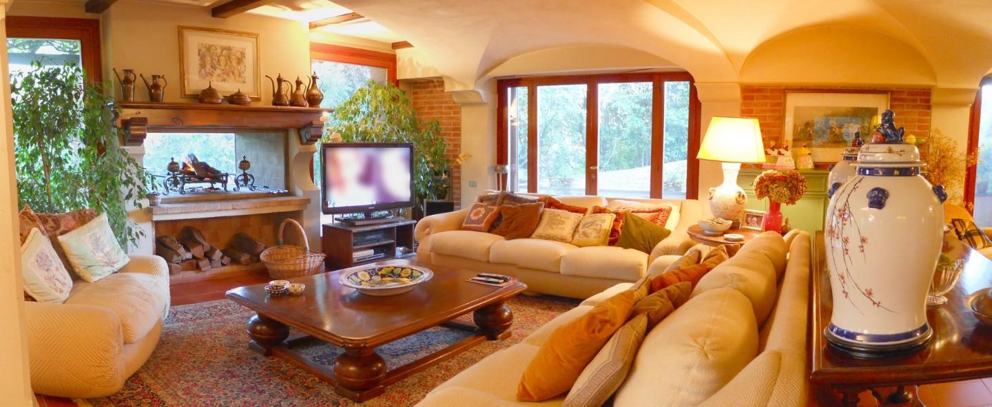 VENDESI in bellissima zona residenziale in prima collina, vicino al centro , elegante villa con parco. La villa é caratterizzata grandi superfici vetrate che si affacciano sul parco che irraggiano luce da ogni lato . Grandi Salotti di rapprese...