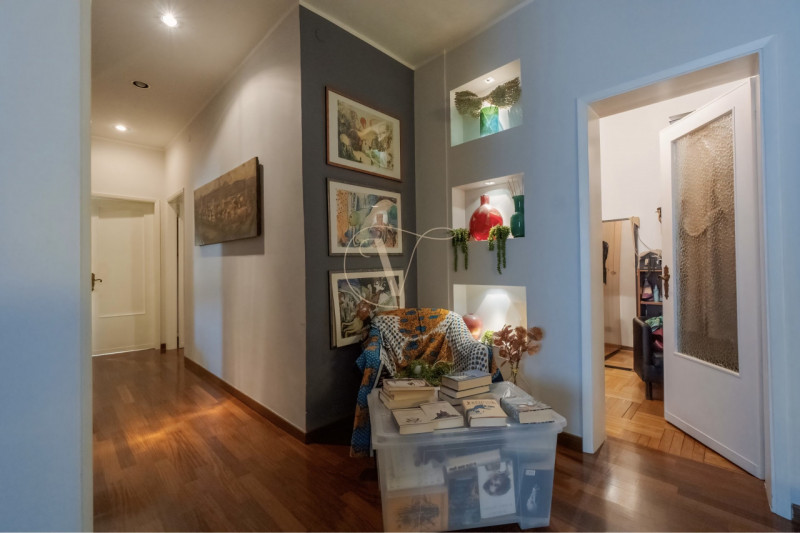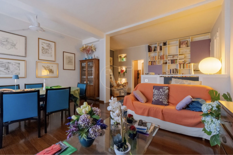 Primo piano con ascensore, dall’ingresso si accede a un soggiorno di grandi dimensioni e cucina; vi e poi salotto di passaggio che porta ad un terrazzo collegato alla cucina e ad un corridoio che permette di accedere a: due camere accostate che co...