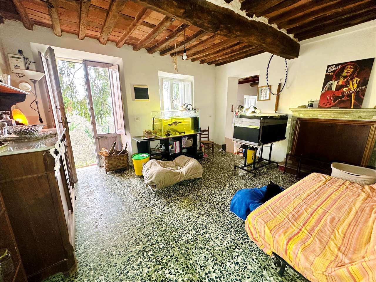 San Colombano, terratetto in condizioni abitabili con terreno e annessi esterni. L'immobile si sviluppa su tre livelli e si compone da; piano terra, ingresso in soggiorno, cucina con camino e ripostiglio, al primo piano disimpegno, camera matrimon...