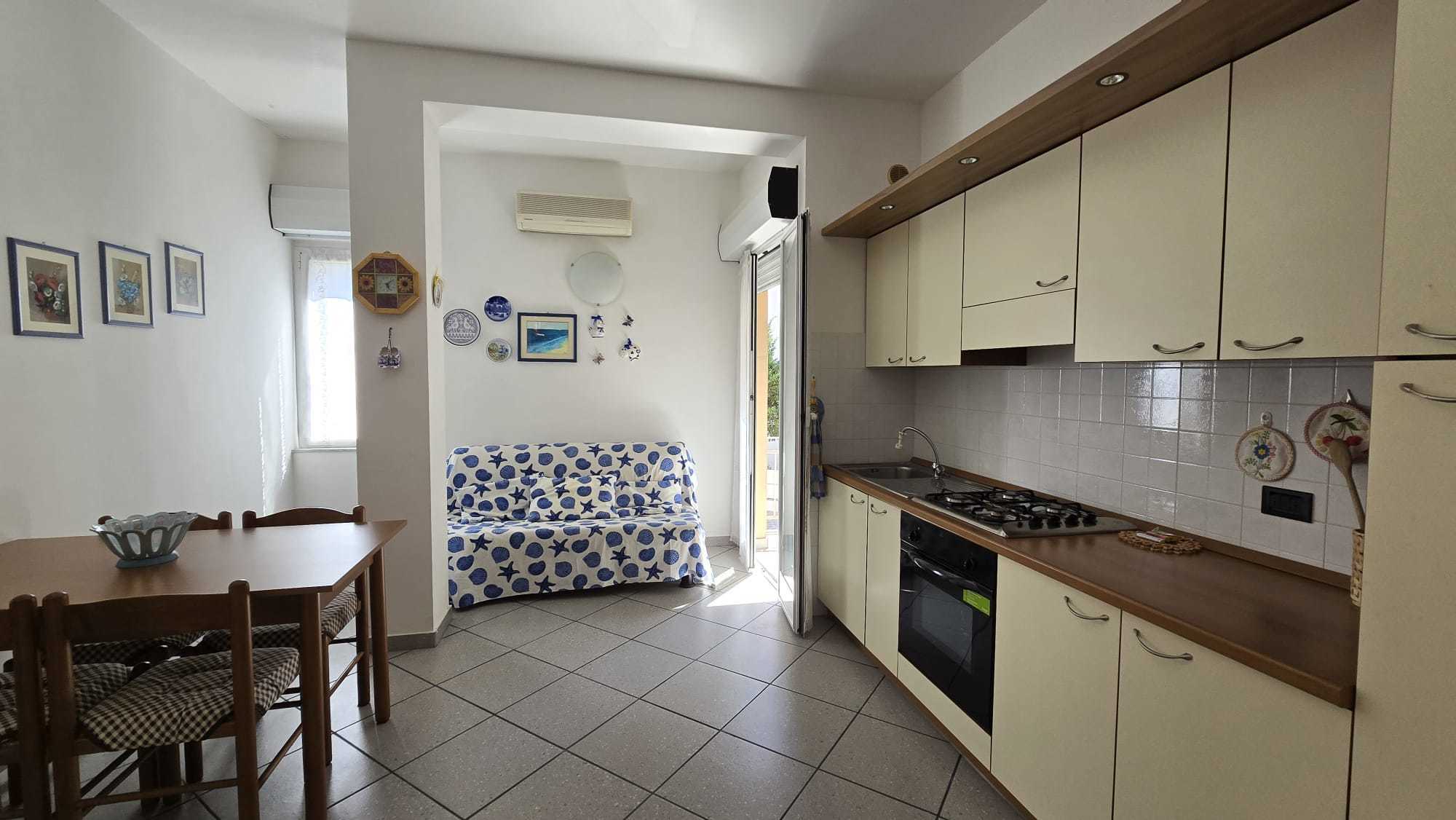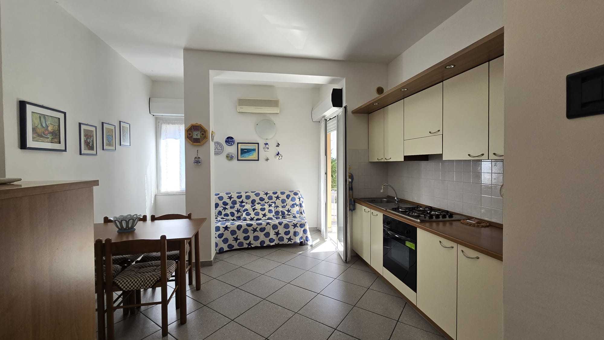 Appartamento bilocale posto al pino primo di un piccolo condominio. Si compone di ingresso sul soggiorno con angolo cottura, bagno finestrato e camera matrimoniale; dotato di lavatrice, forno; l'appartamento ha l'aria condizionata. ed un piccolo b...
